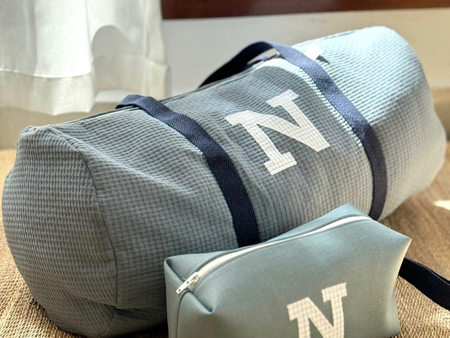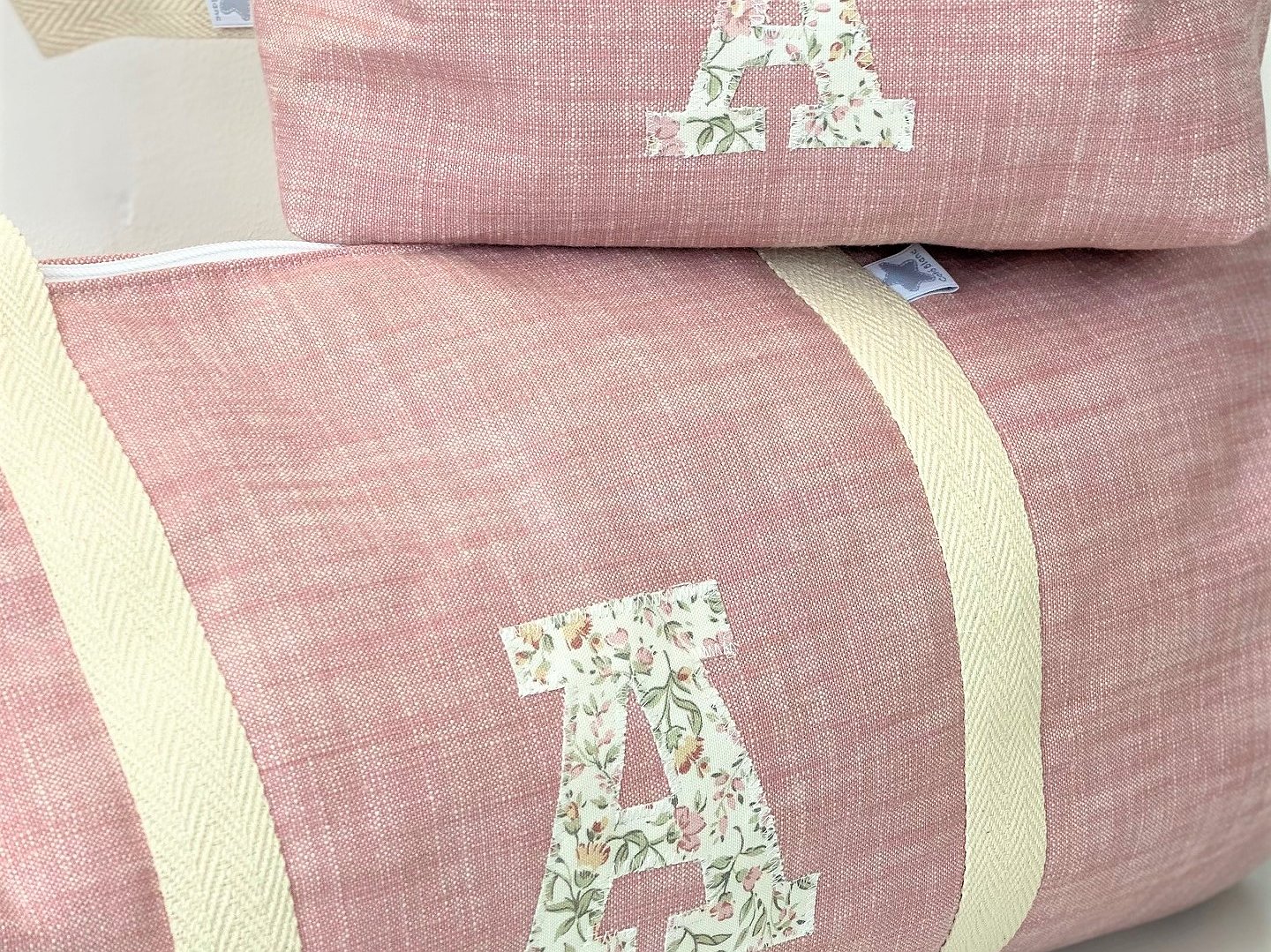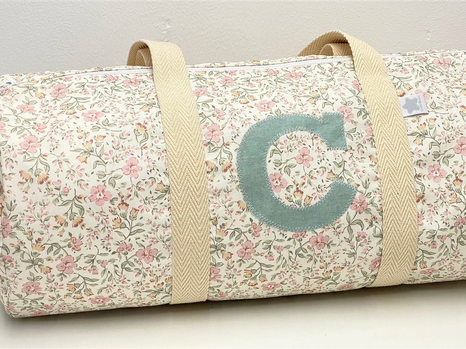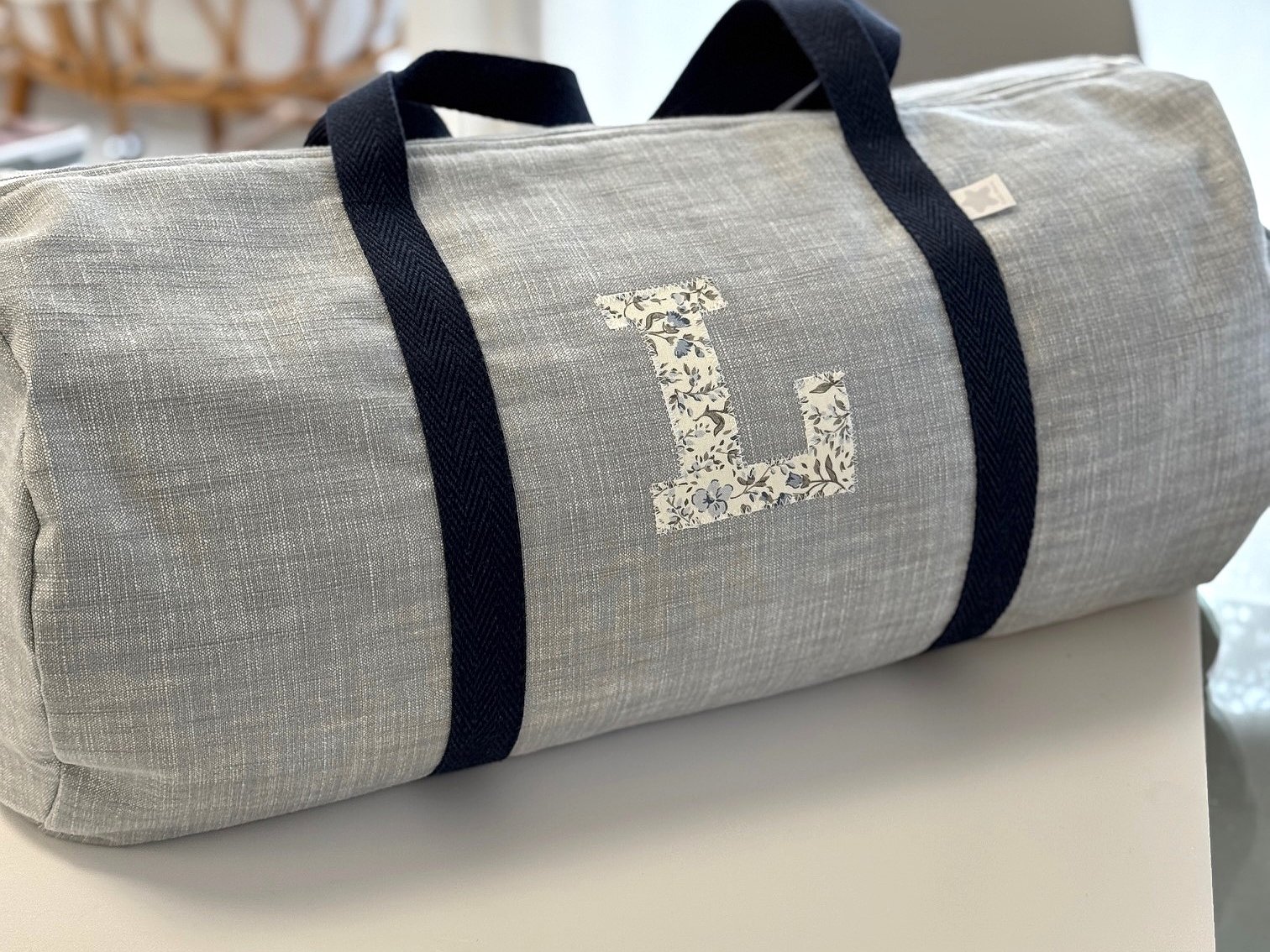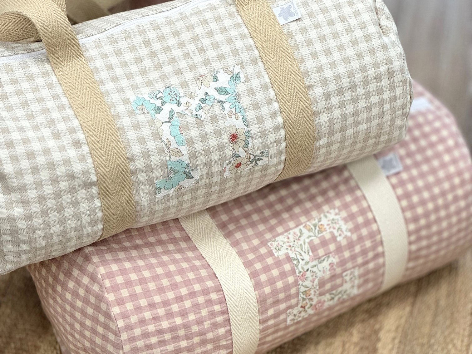 Macuto weekend con inicial o detalle aplicado en la tela que más te guste acolchada y con asas de mano para coger.