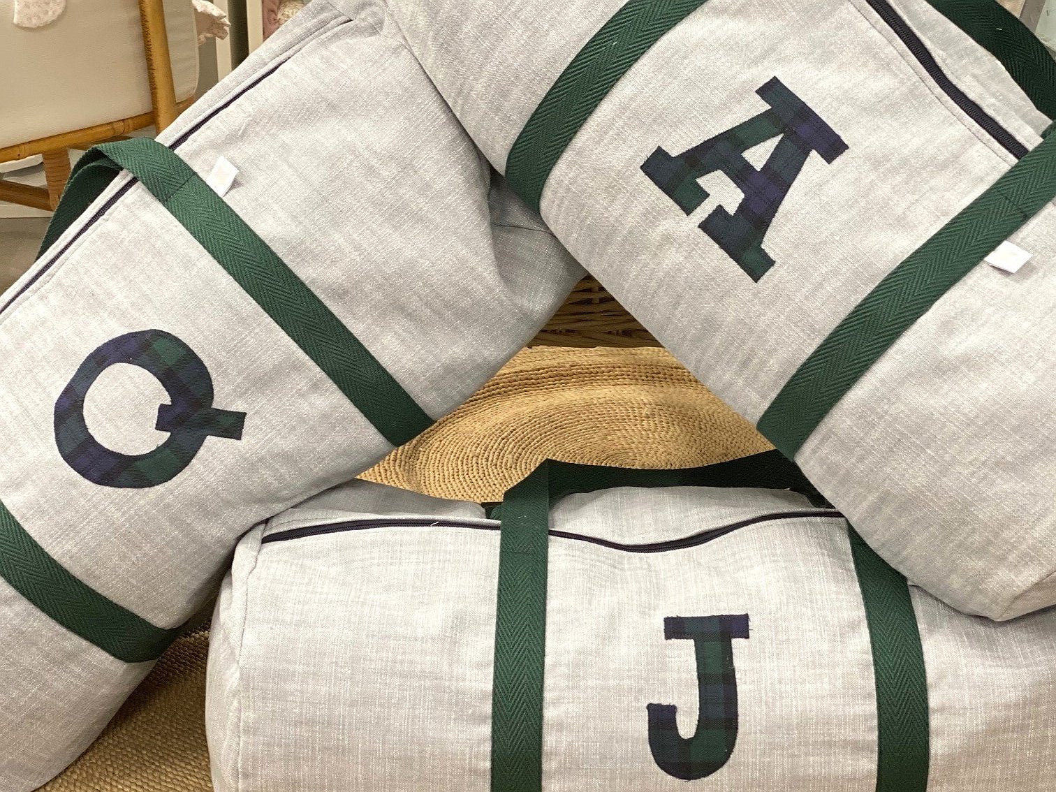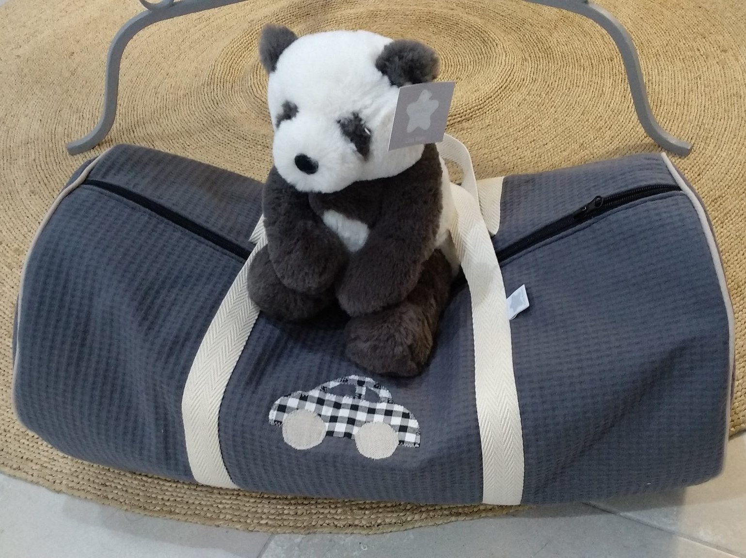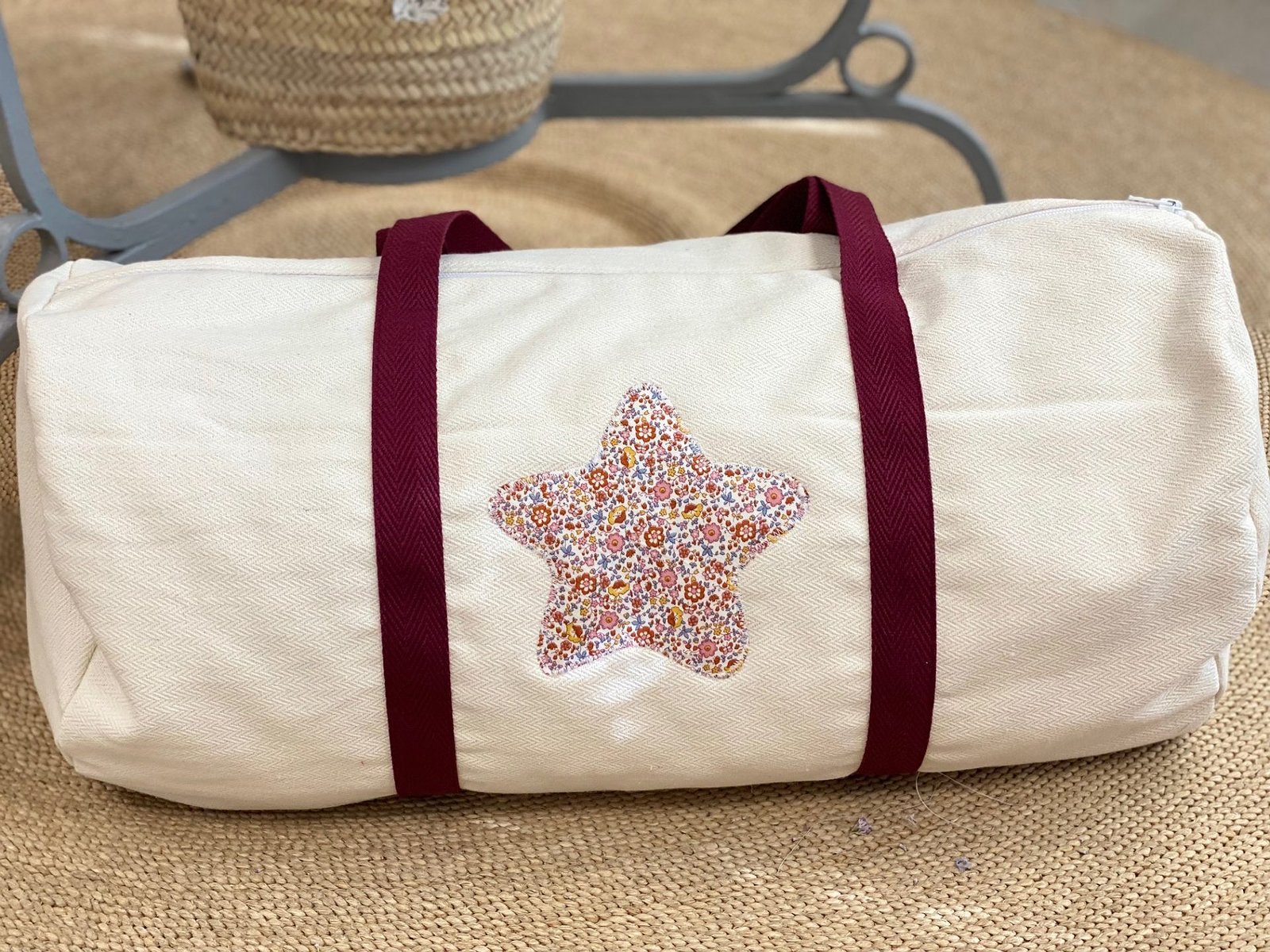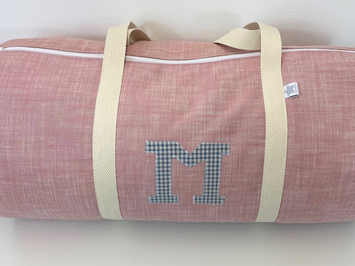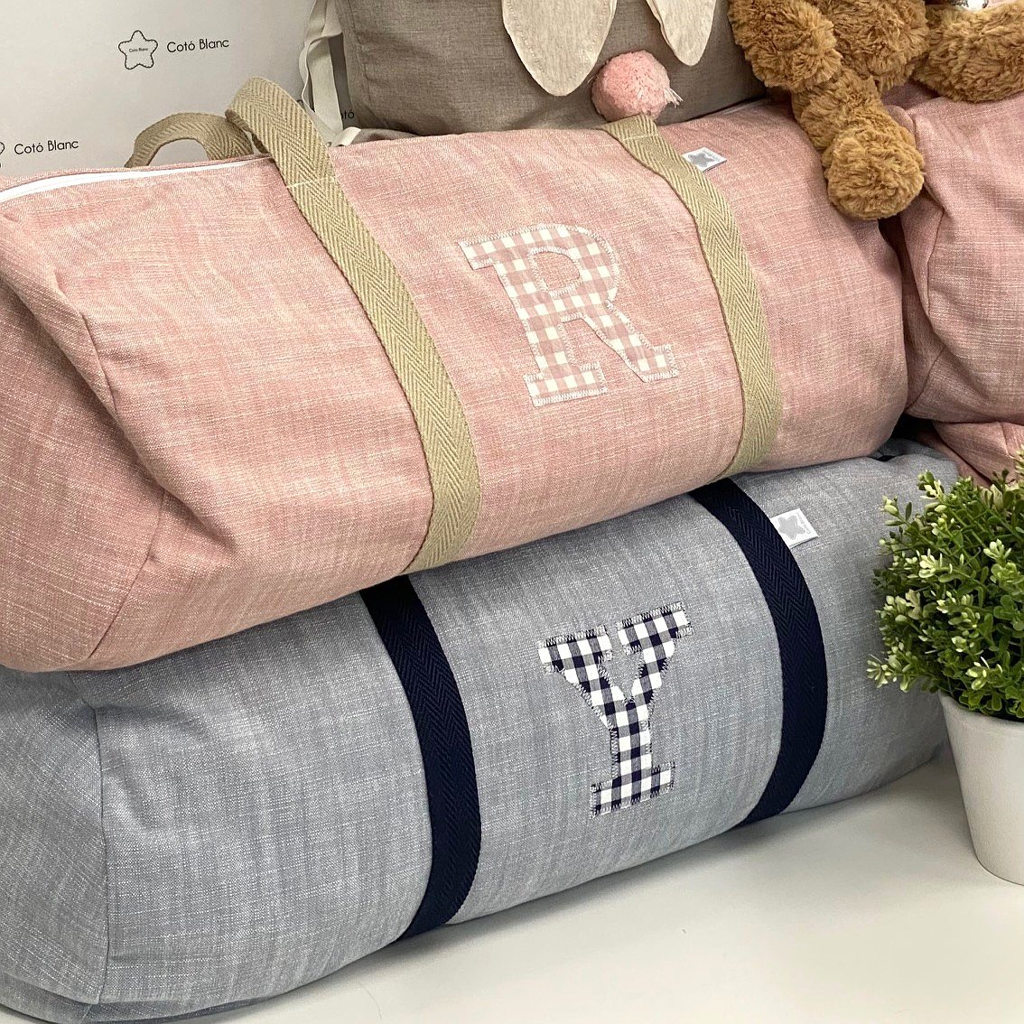 Macuto weekend con inicial o detalle aplicado en la tela que más te guste acolchada y con asas de mano para coger.