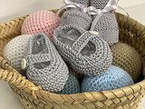Merceditas hechas a mano en punto de algodón , de textura muy suave y agradable a los pies de tu peque.