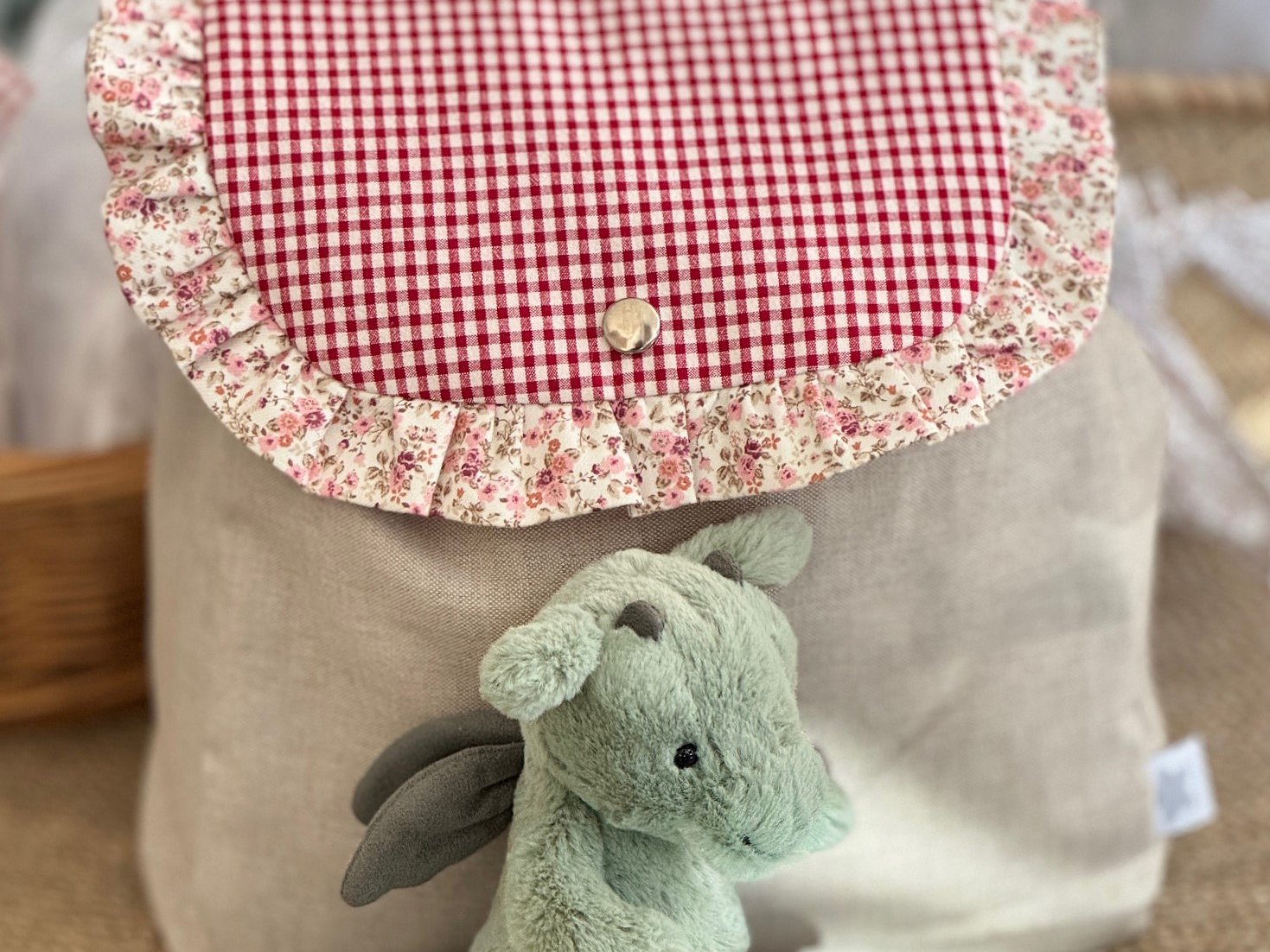 Mochila guardería de tela con volante
