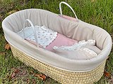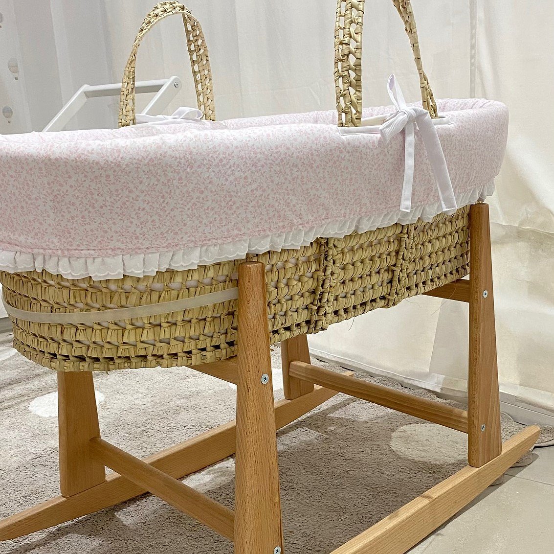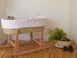 Se trata de un capazo homologado de palma natural con un diseño muy cuidado. El efecto balancín es perfecto para conciliar el sueño del bebé.