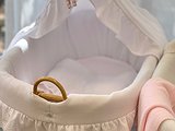 Por orto lado, podrás elegir la tela de los lazos para darle el toque al moisés.