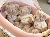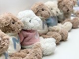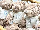 El peluche beige siempre lleva el jersey en blanco, el peluche blanco lleva el jersey arena piedra, también tenemos el blanco con jersey rosa y el roto con jersey azul cieo.