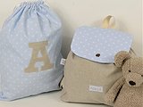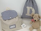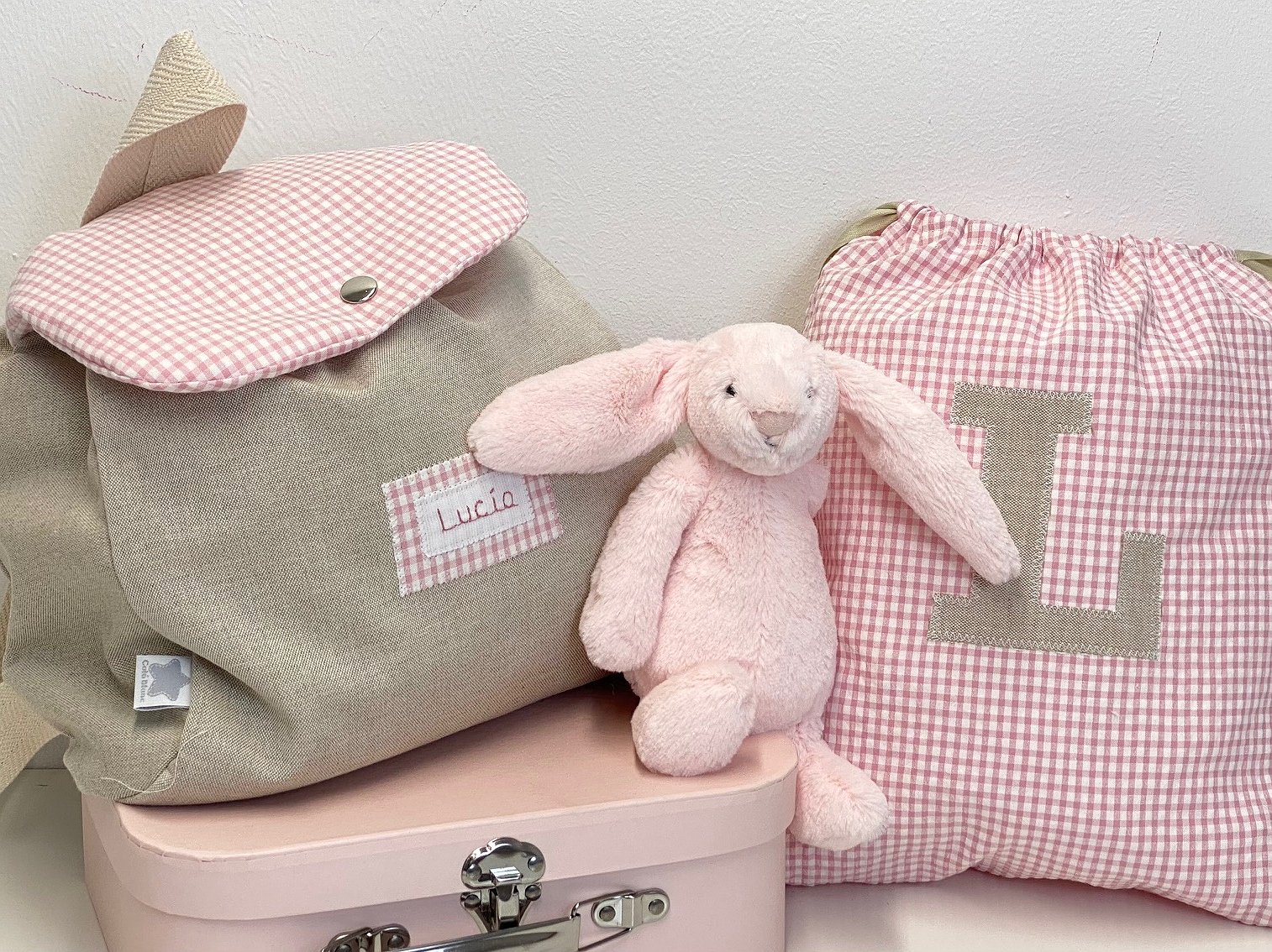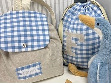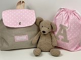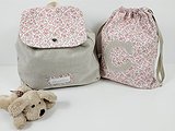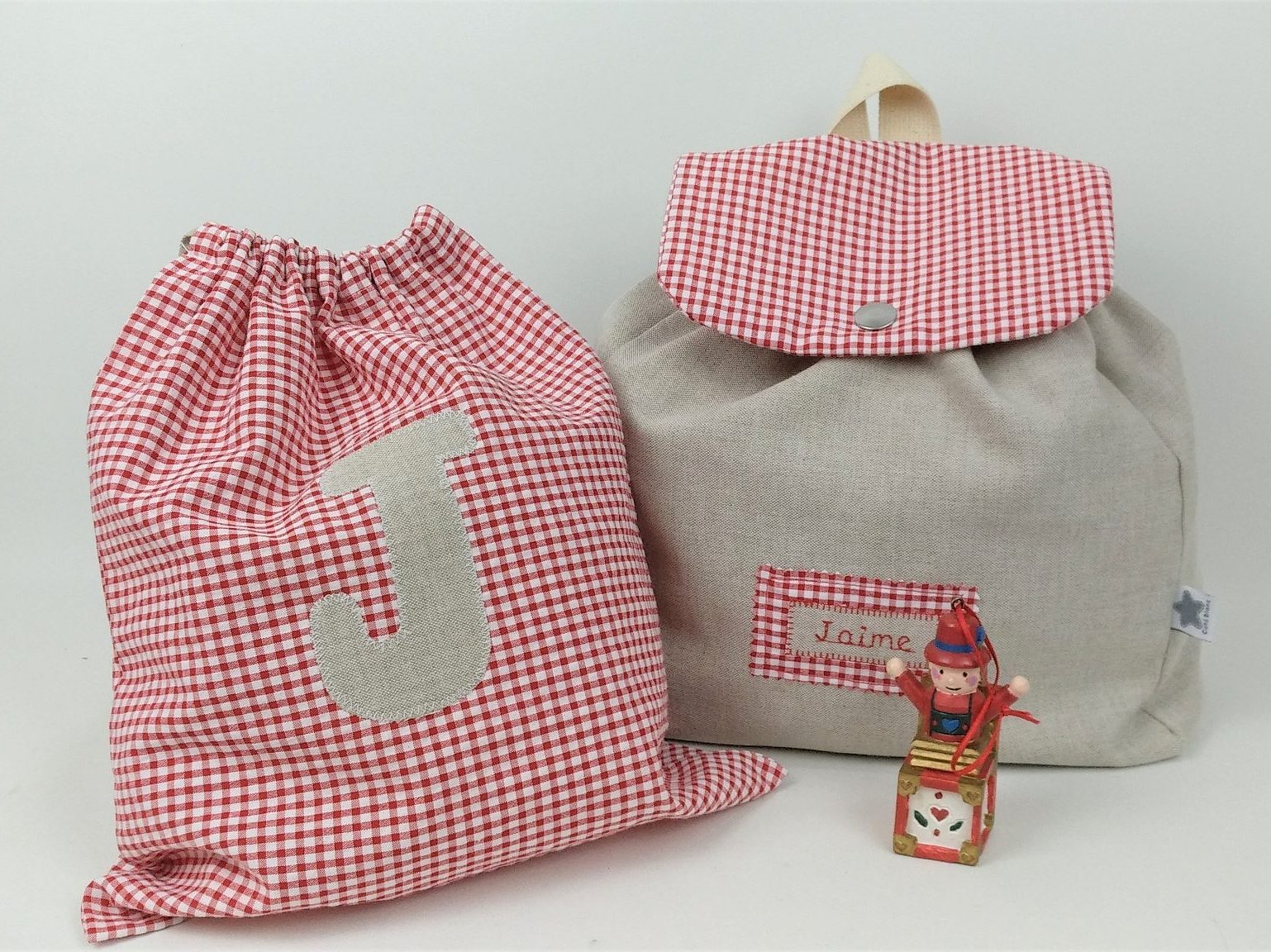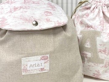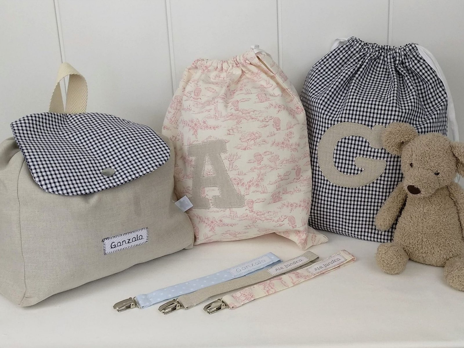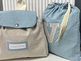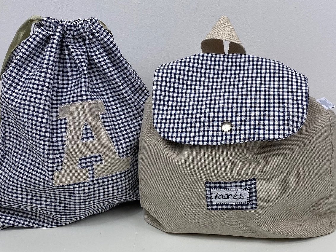 Pack mochila guardería de tela con nombre + bolsa merienda. El conjunto perfecto para la vuelta al cole.