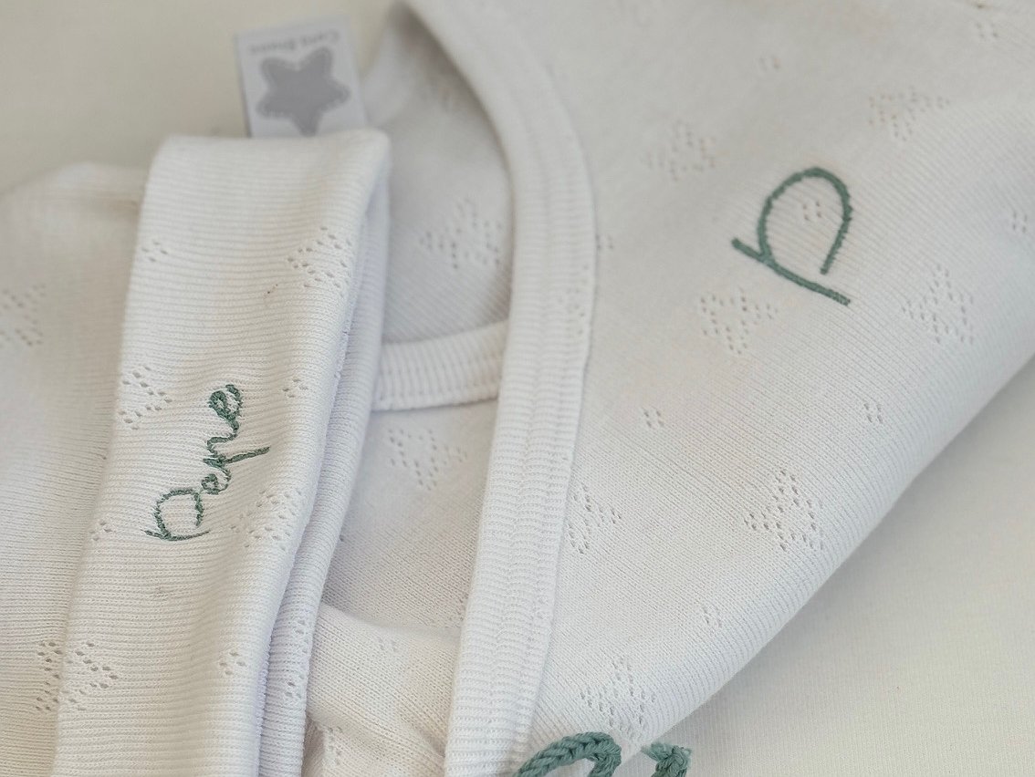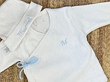 Si lo quieres bordar indícanos su nombre y lo bordaremos en el gorrito, en la chambrita la inicial. Lo bordaremos al tono del lacito que escojas!
