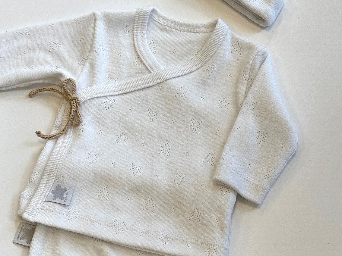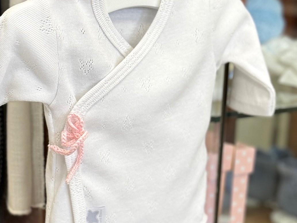 Ésta pieza es atemporal, pues su tejido de algodón lo hace apropiado para la recién llegada de tu bebé.