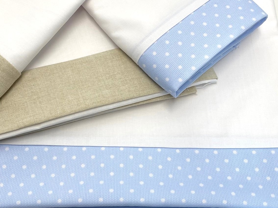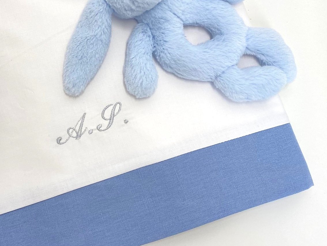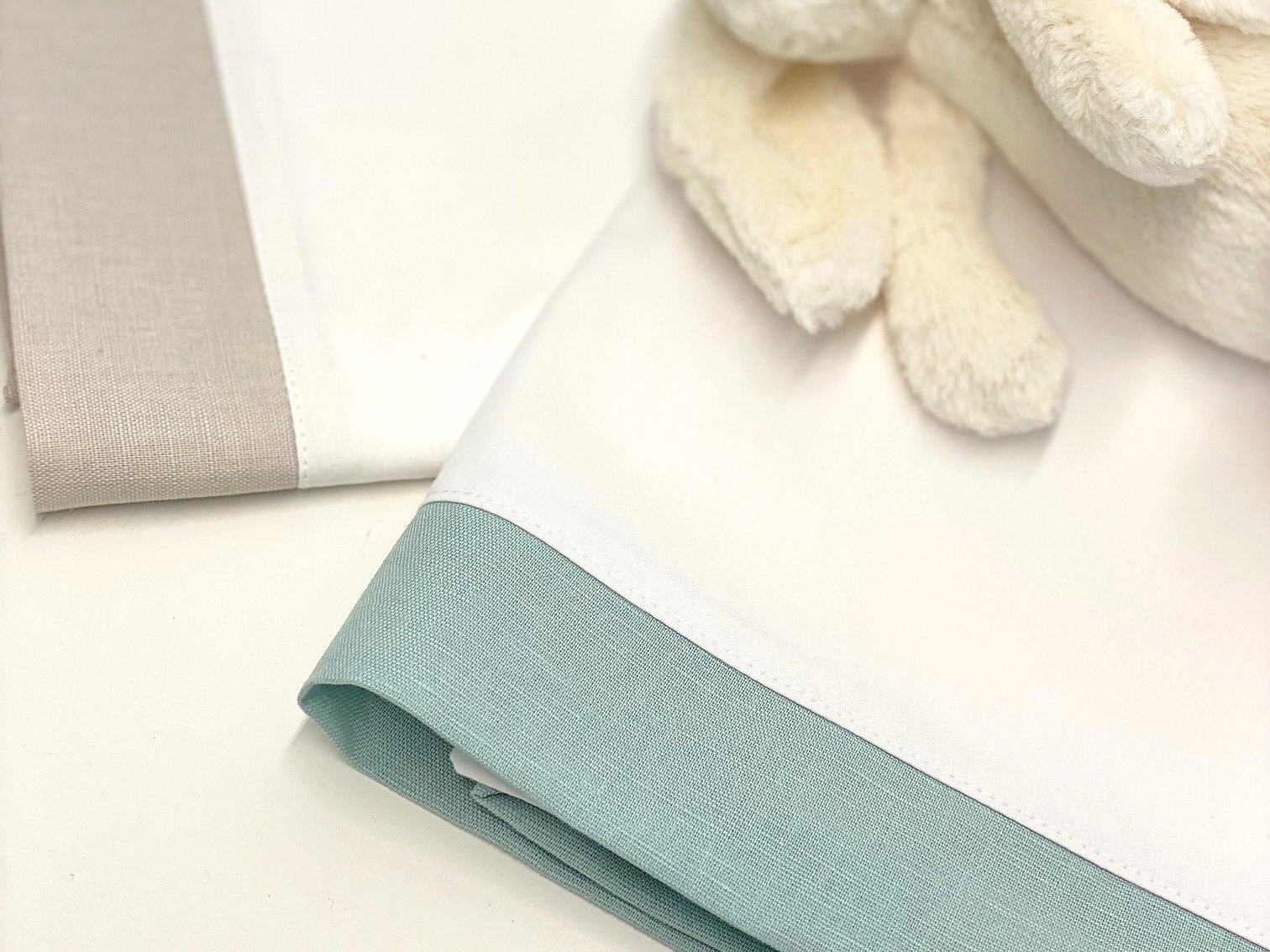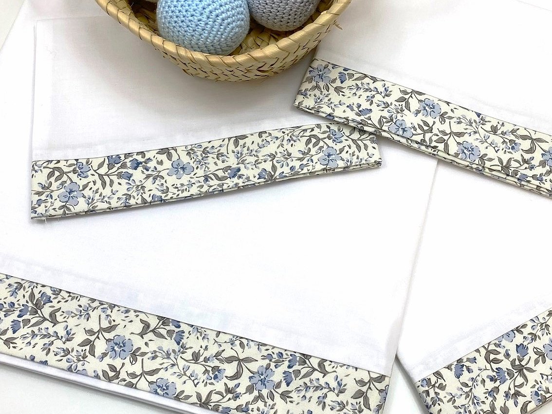 La sábana lleva una pequeña cenefa en el borde que puedes personalizar eligiendo la tela que más te guste. Incluye funda de almohada de algodón 100% con cenefa a conjunto.