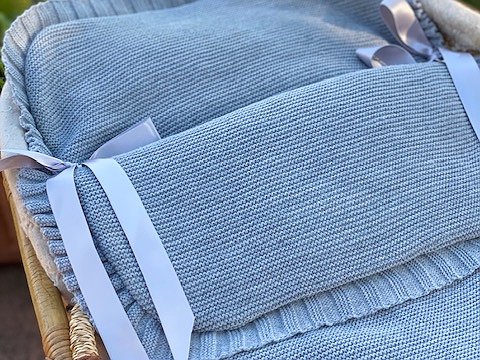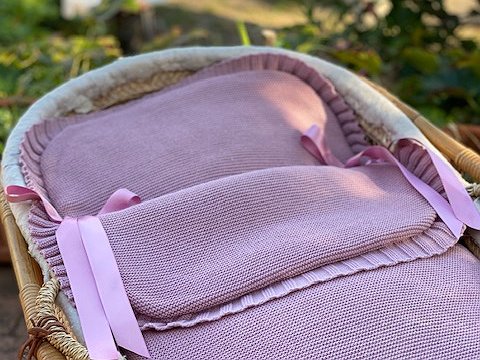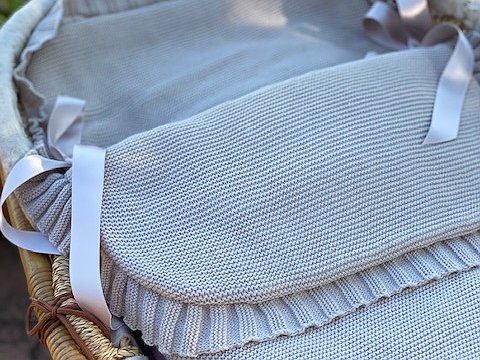 Saco para cuco de punto modelo María pensado para ponerlo dentro del capazo o del cuco del cochecito. Perfecto para salir de la clínica o para llevar arropado a tu bebé en tiempo de más fresquito.