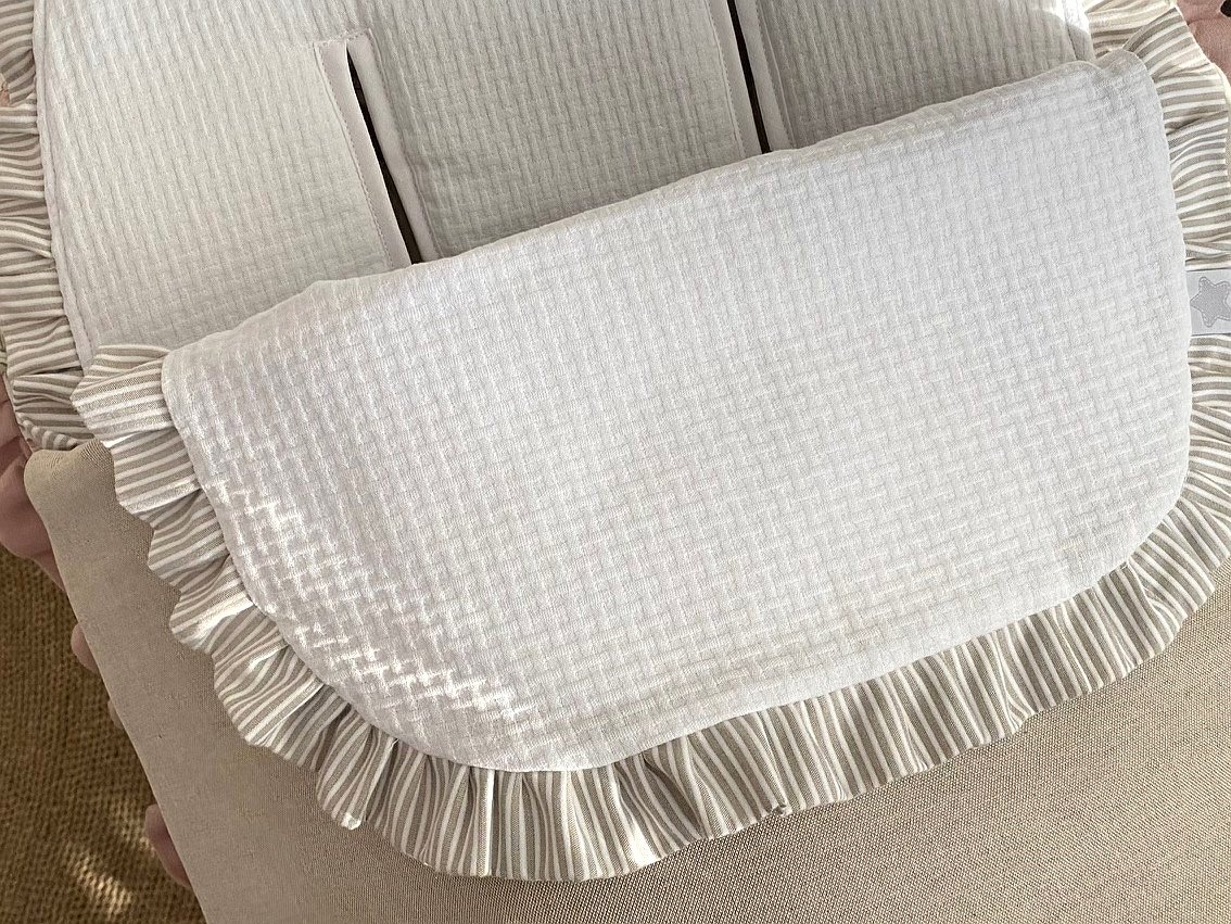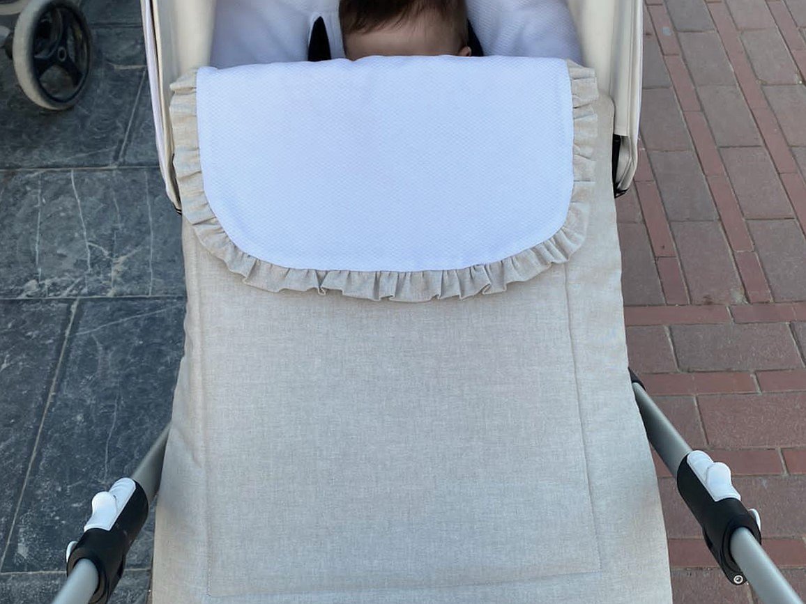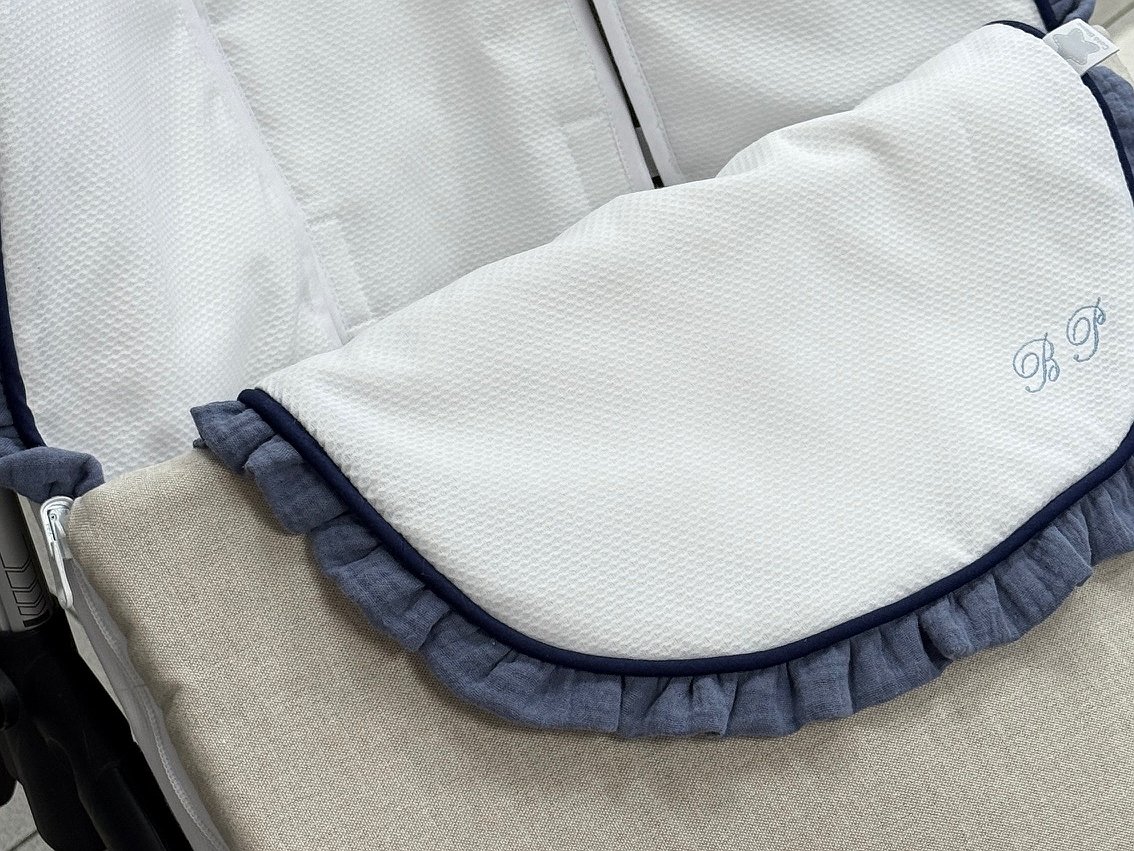 Saco para silla de paseo con volantes. Un diseño que se adapta en concreto para cada modelo de cochecito: Bugaboo Camaleón, Bugaboo Fox, Bugaboo Bee, Bugaboo Donkey, Bugaboo Frog, Bugaboo Bufalo, Maclaren, universal, yoyo, Joolz Hub... Contacta para otras marcas.