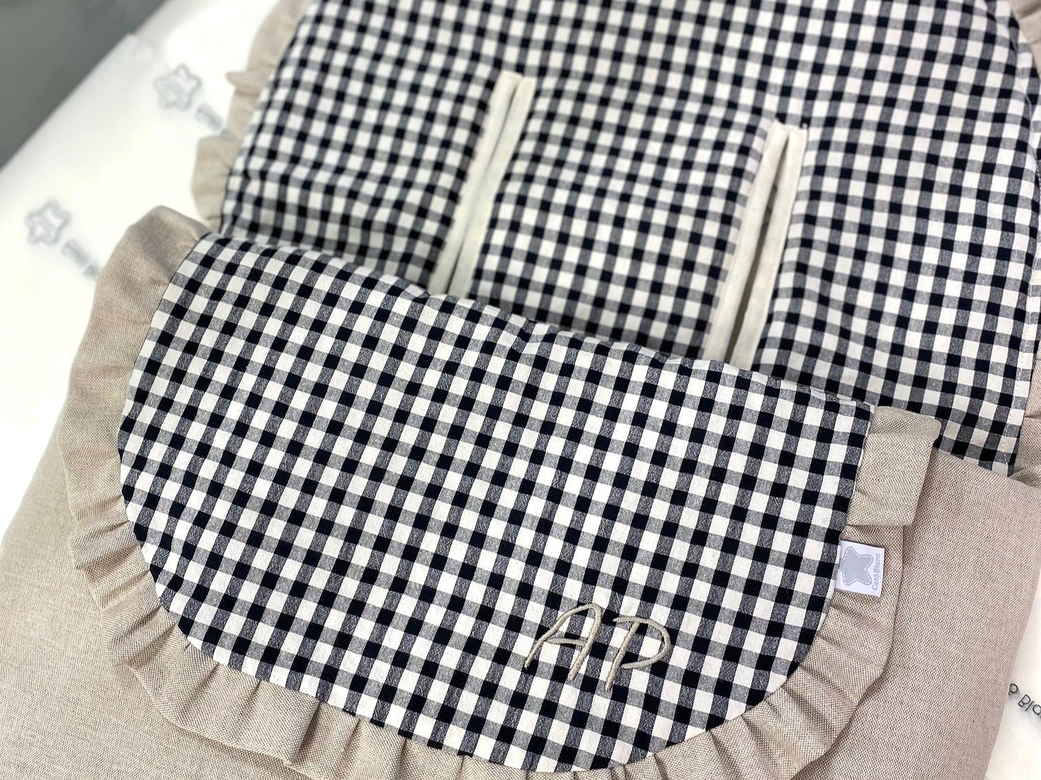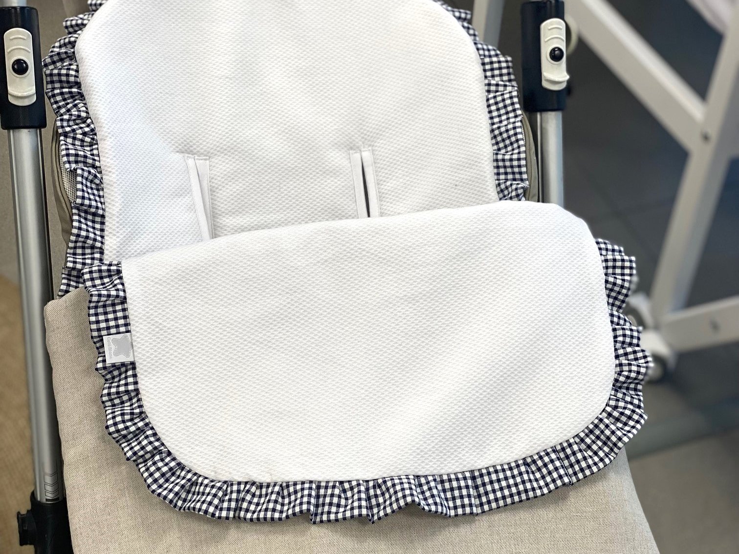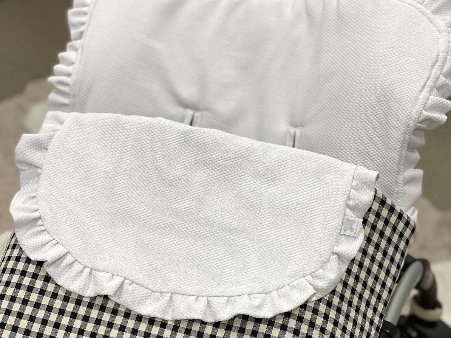 Saco para silla de paseo con volantes. Un diseño que se adapta en concreto para cada modelo de cochecito: Bugaboo Camaleón, Bugaboo Fox, Bugaboo Bee, Bugaboo Donkey, Bugaboo Frog, Bugaboo Bufalo, Maclaren, universal, yoyo, Joolz Hub... Contacta para otras marcas.