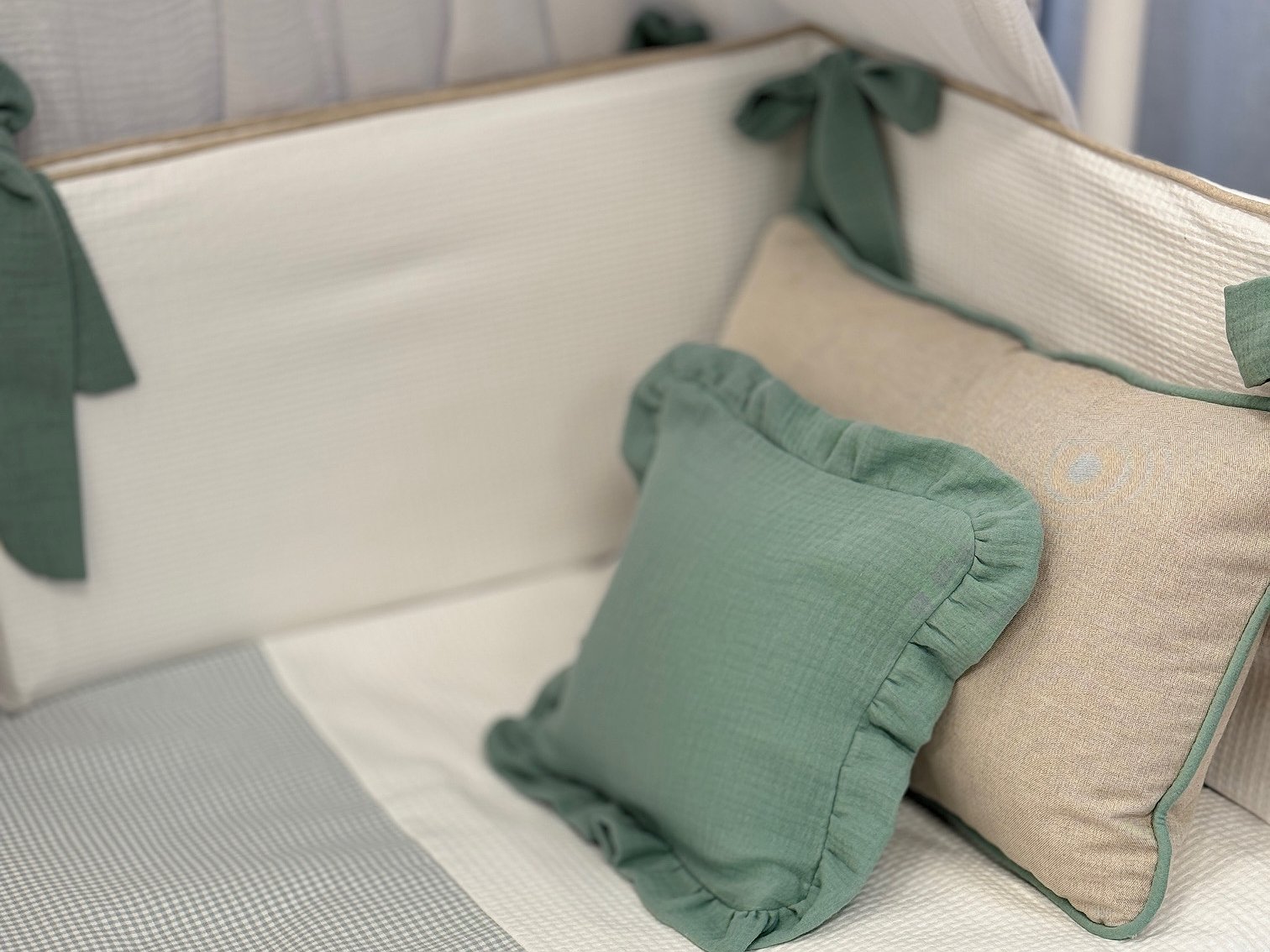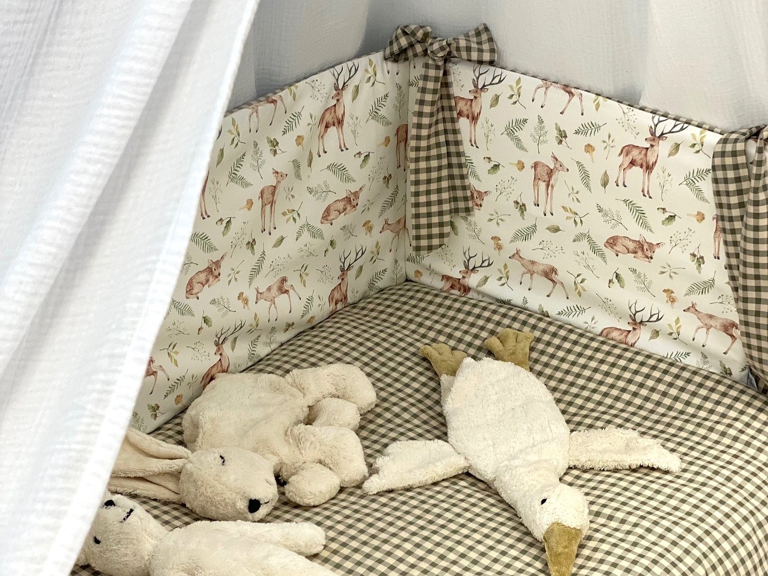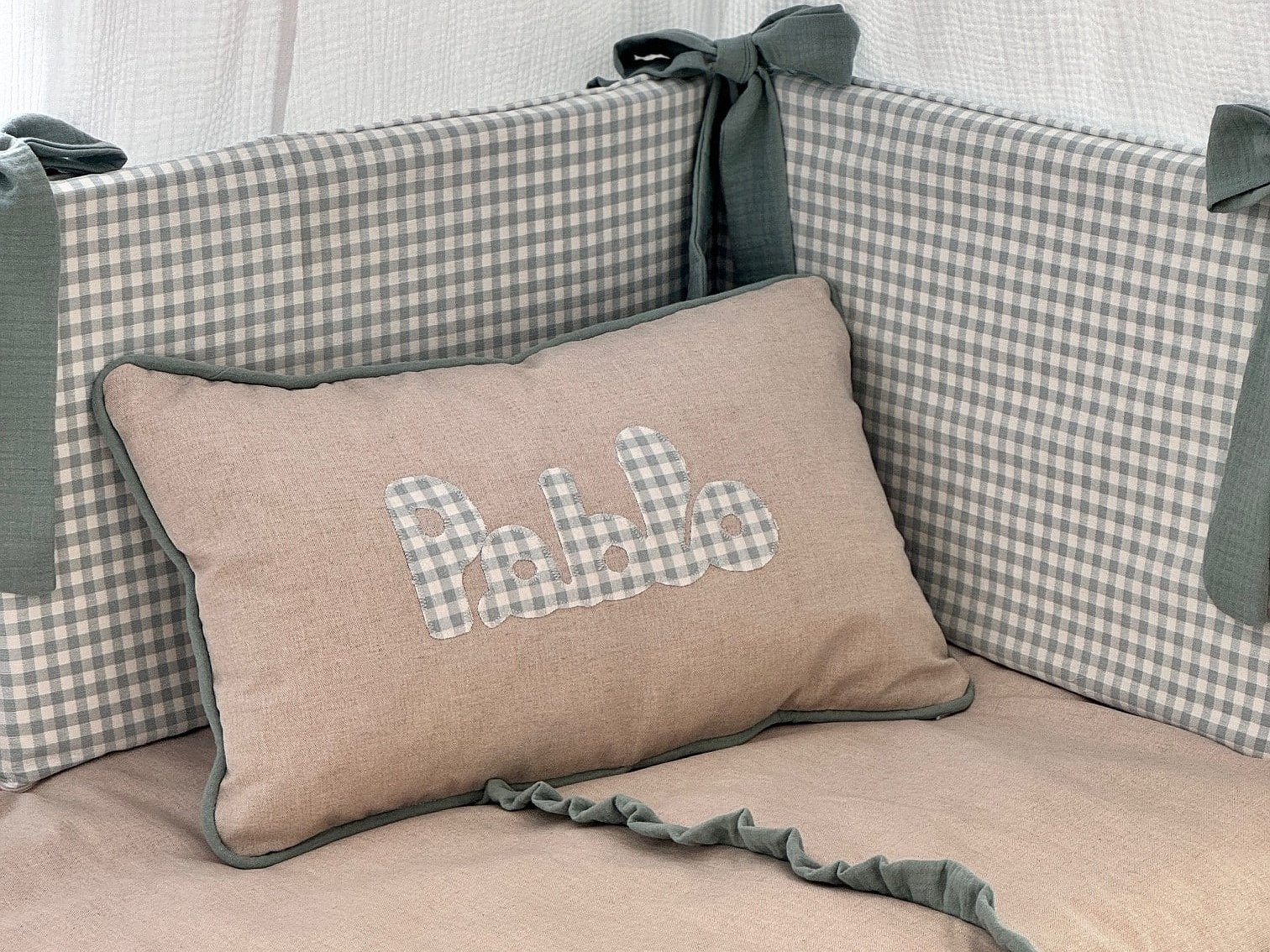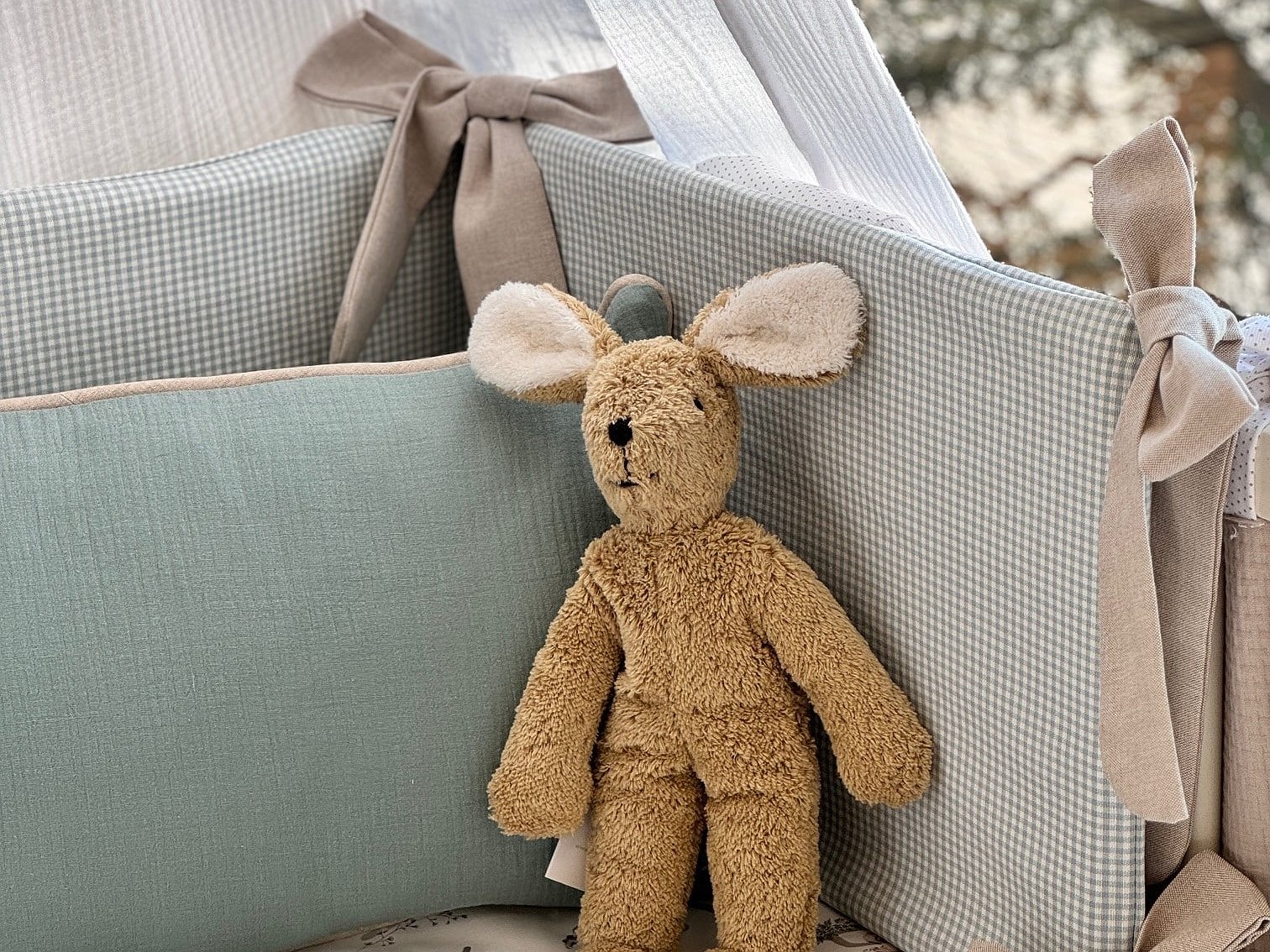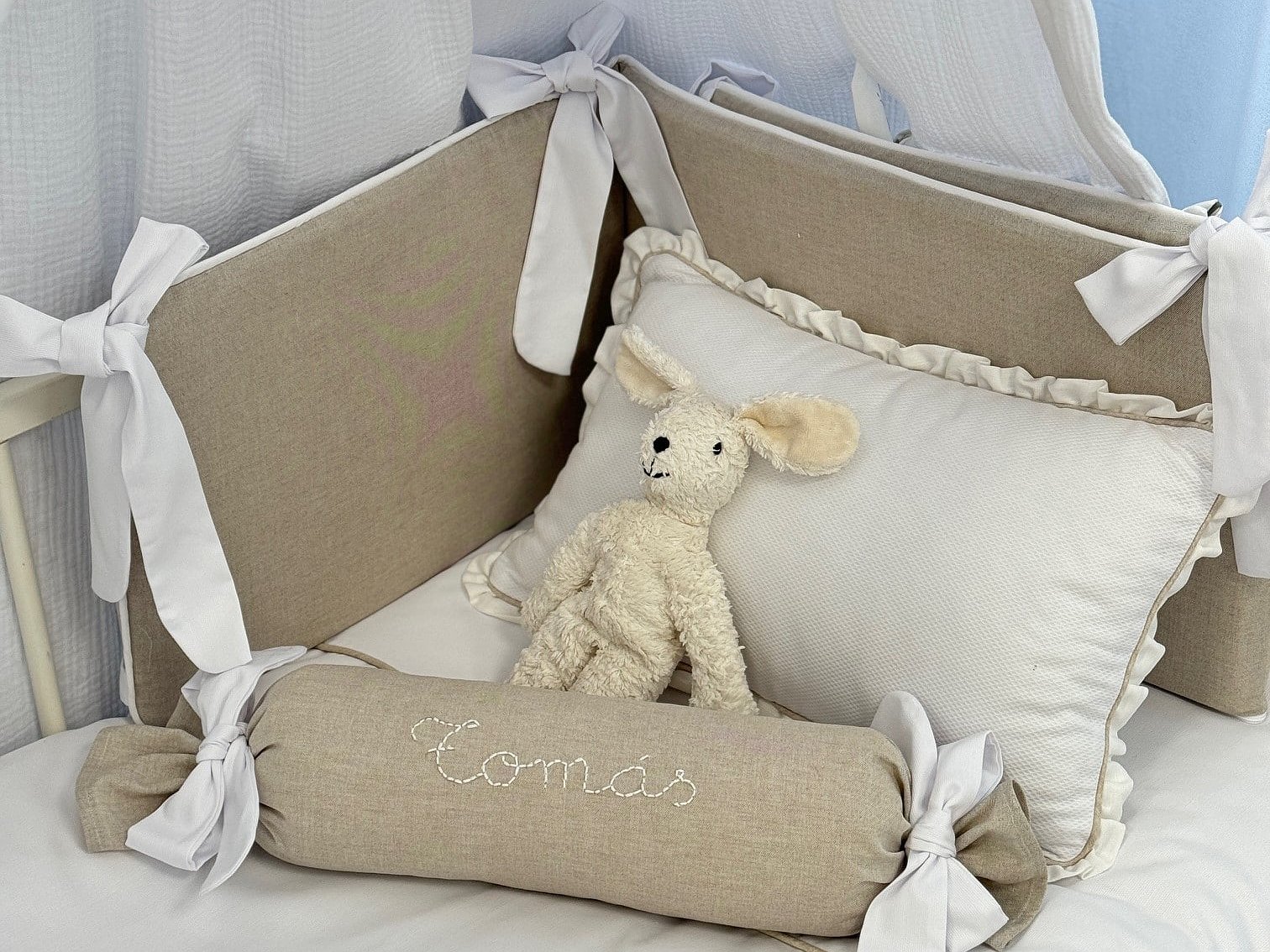 Es un protector de cuna personalizado y totalmente desenfundable, lo que te permite lavarlos en cualquier momento de forma fácil.
