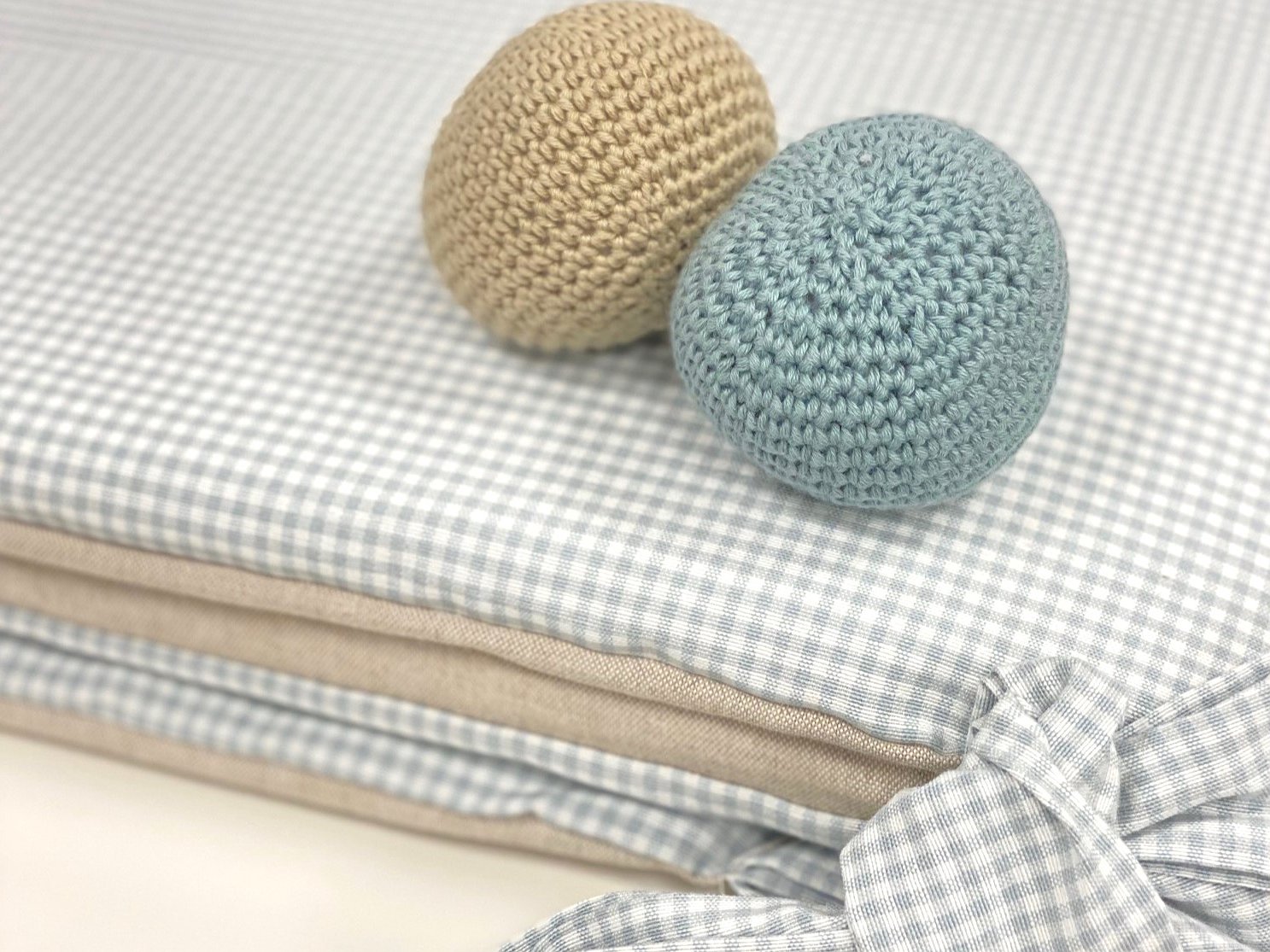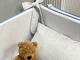 Consideramos que no es muy recomendable hacer el protector de cuna todo COMPLETO, porque el niño no debe sentirse metido en una caja, querrá levantarse porque no ve nada.