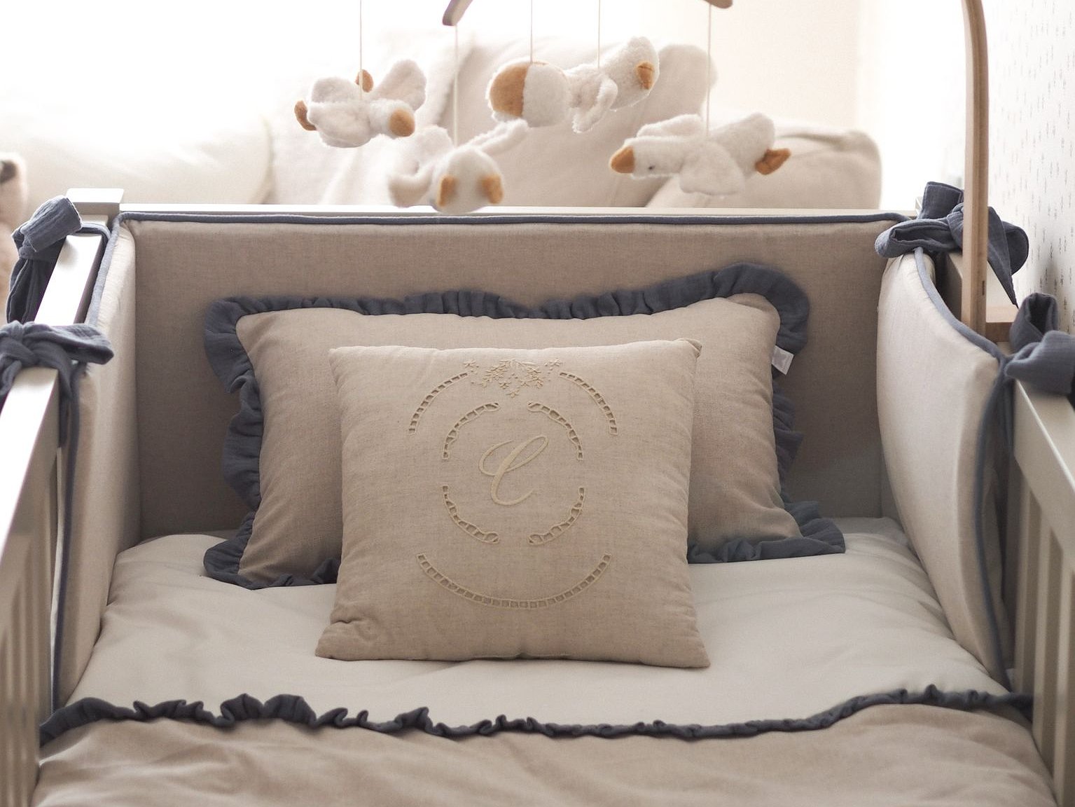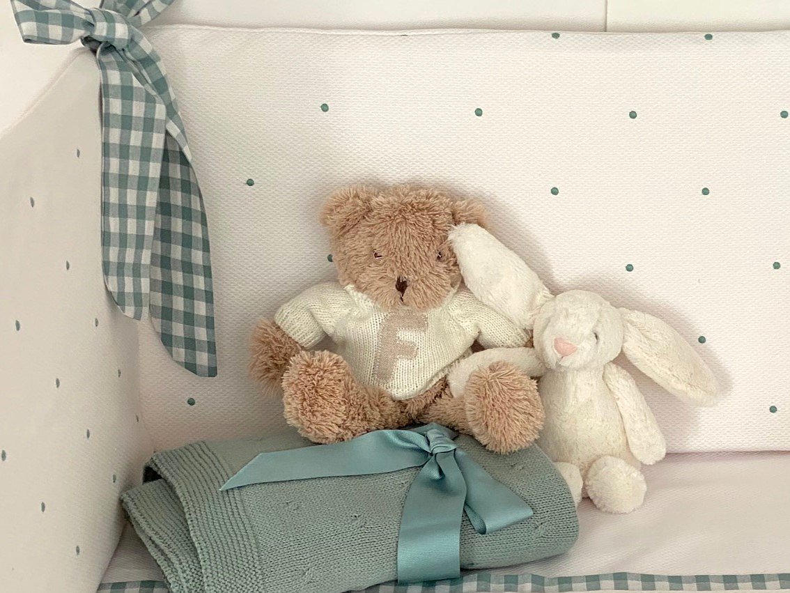 Es un protector de cuna personalizado y totalmente desenfundable, lo que te permite lavarlos en cualquier momento de forma fácil.