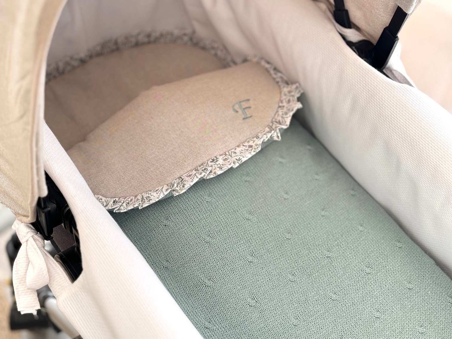 Saco acolchado para capazo modelo Mireia con lana exterior pensado para ponerlo dentro del capazo o del cuco del cochecito.