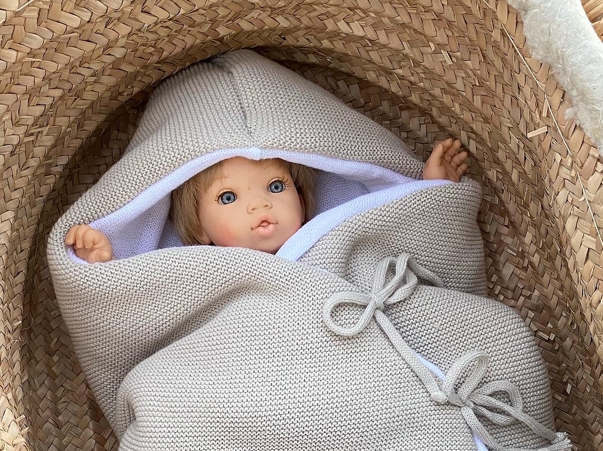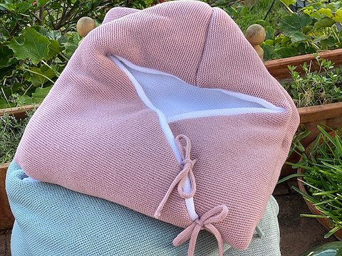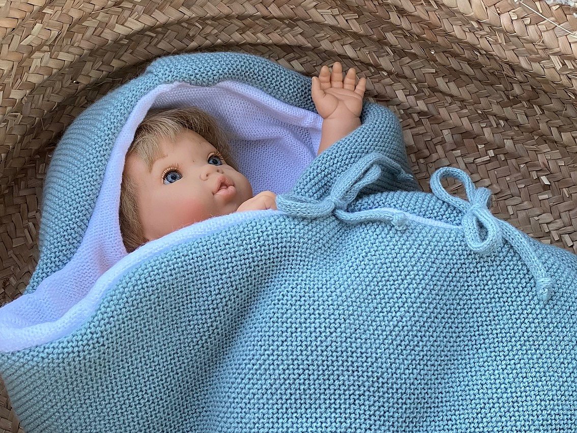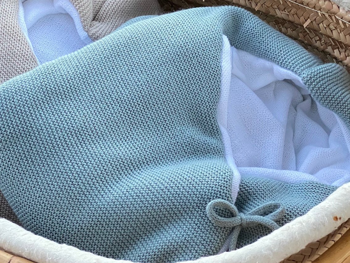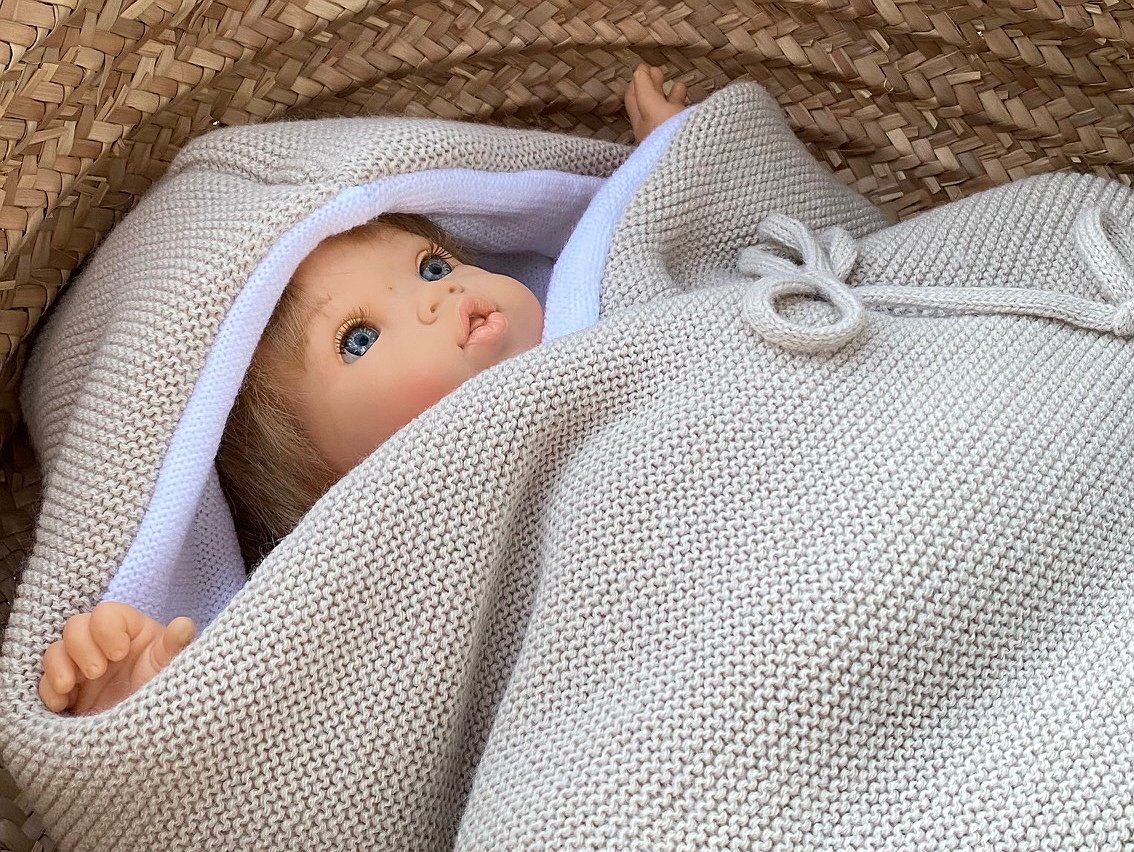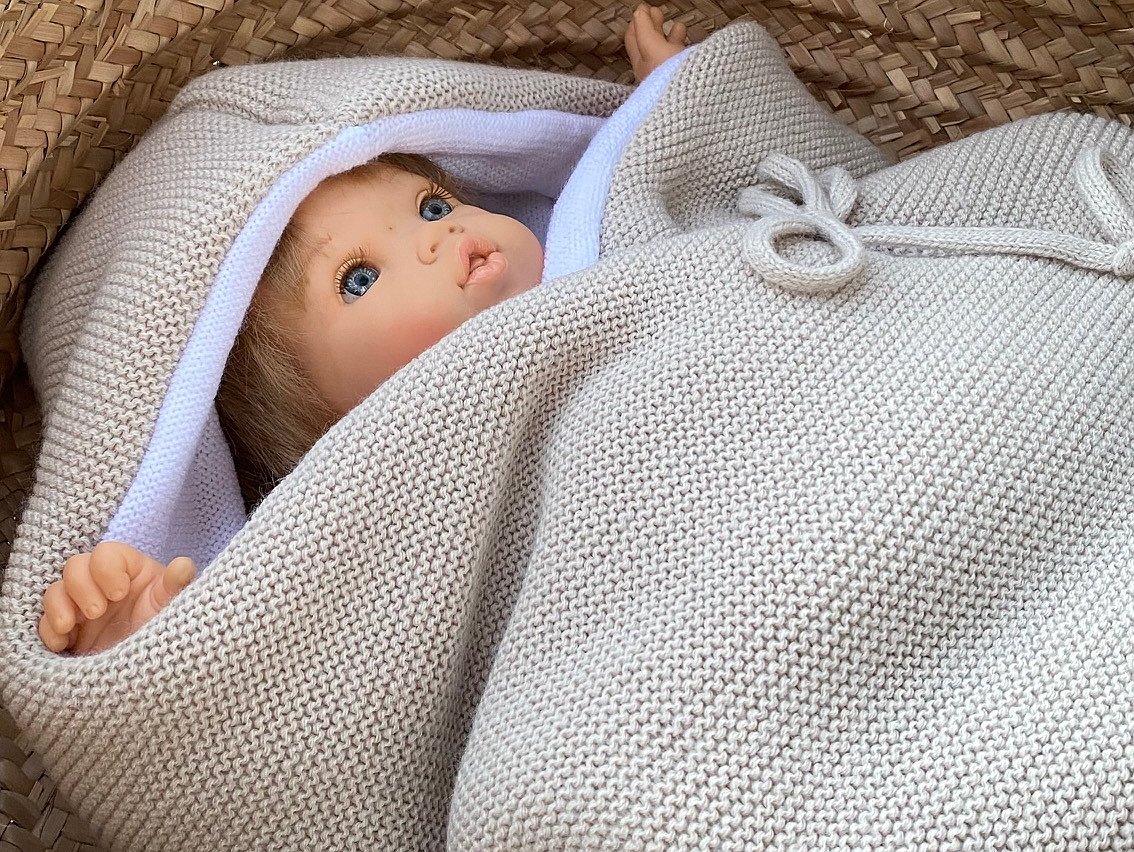 Saco para cuco de punto modelo Blanca pensado para ponerlo dentro del capazo o del cuco del cochecito. Perfecto para salir de la clínica o para llevar arropado a tu bebé en tiempo de más fresquito.