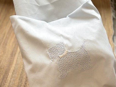 Si quieres también puedes elegir una aplicación, la que más te guste o seleccionar la opción de la inicial (sólo una opción, o detalle o inicial). Cualquiera de las dos opciones irán situadas en la parte frontal del saco.