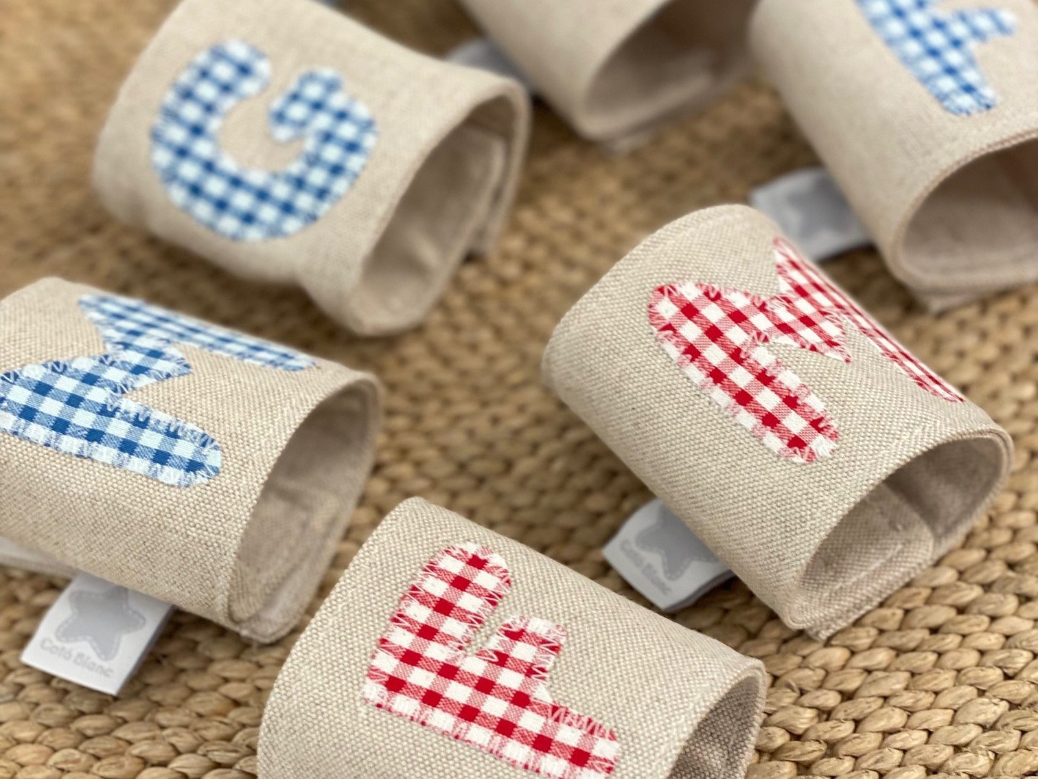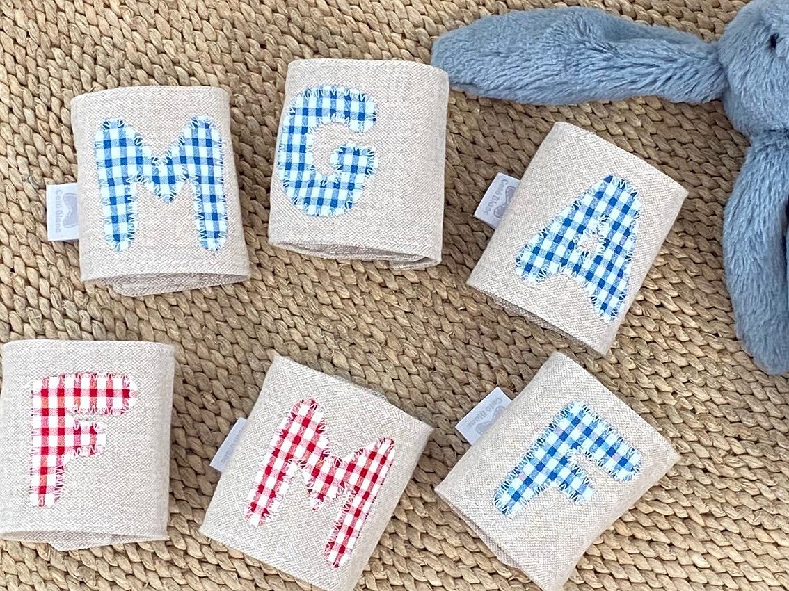 Se trata de unos porta servilletas en tela con cierre en velcro e inicial aplicada en la tela que te guste.