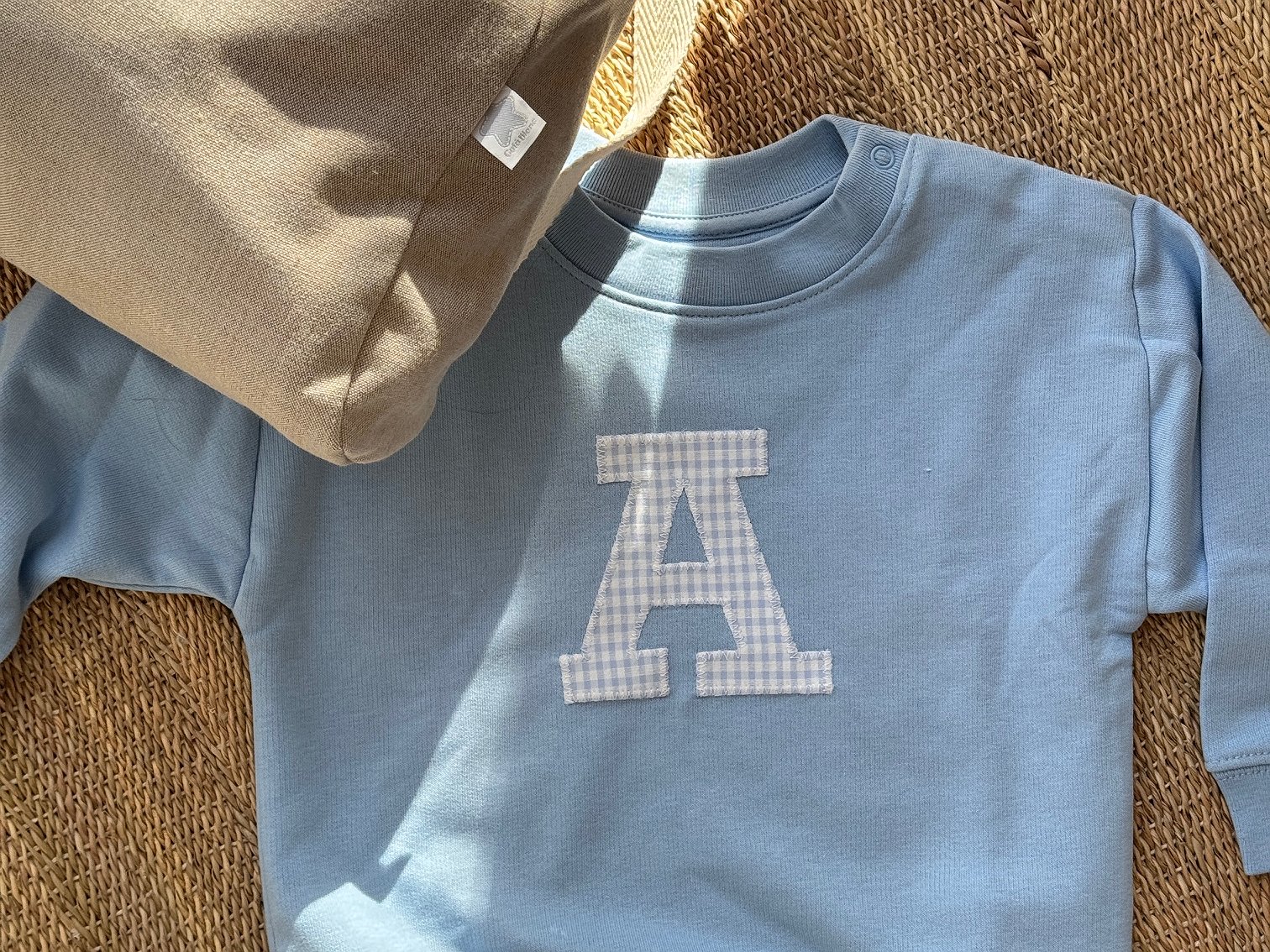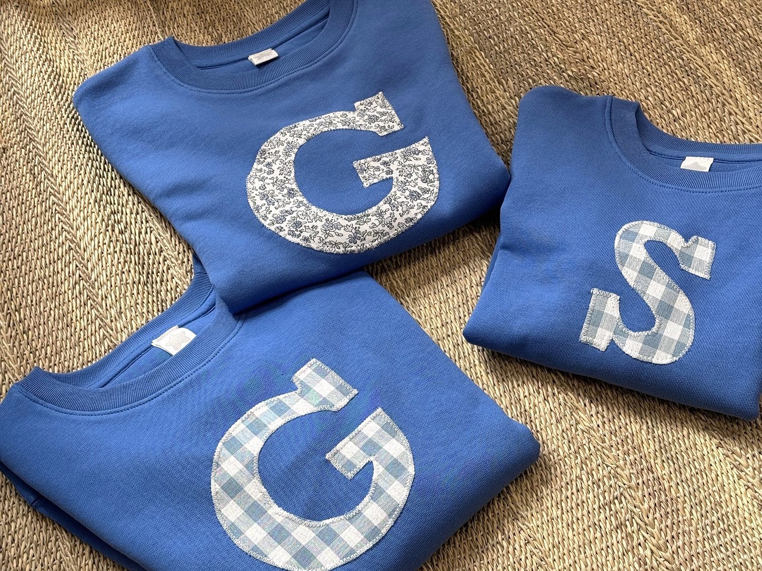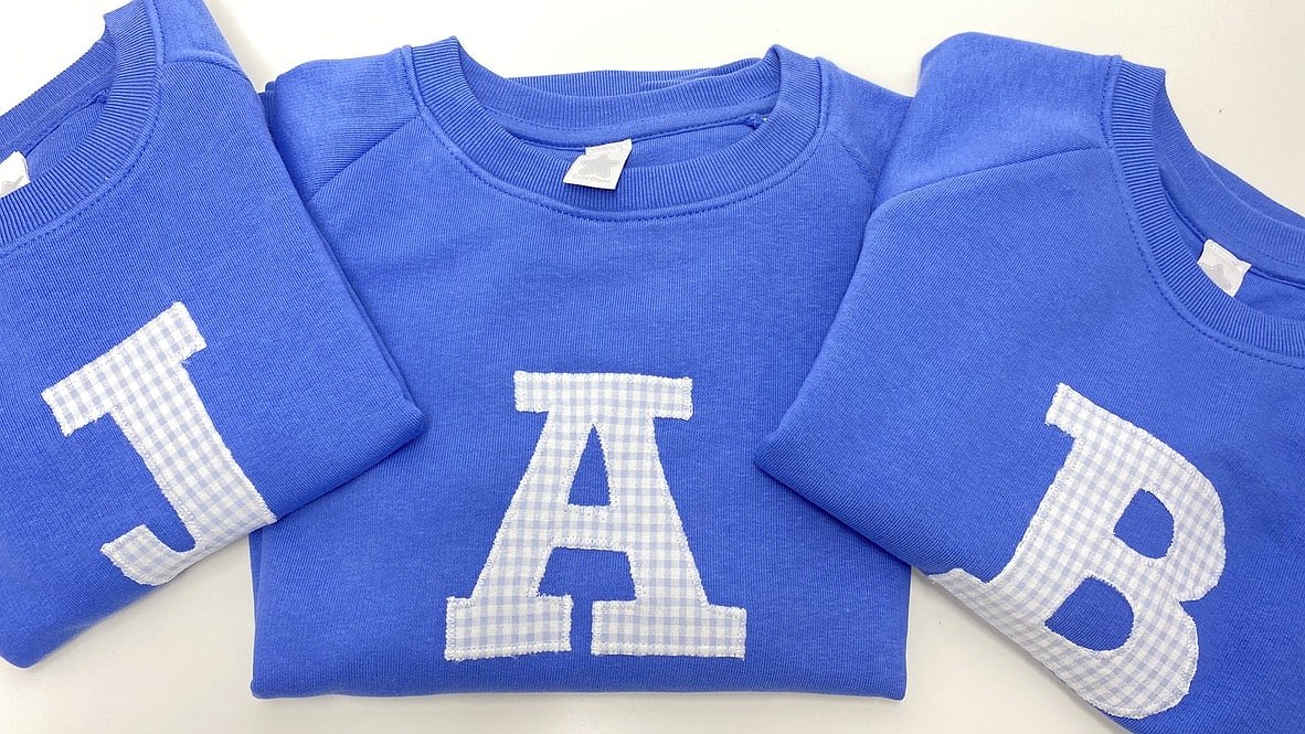 Tan sólo tienes que escoger el color de sudadera que más te guste y la tela que mejor te combine para la inicial. Indícanos la inicial a poner