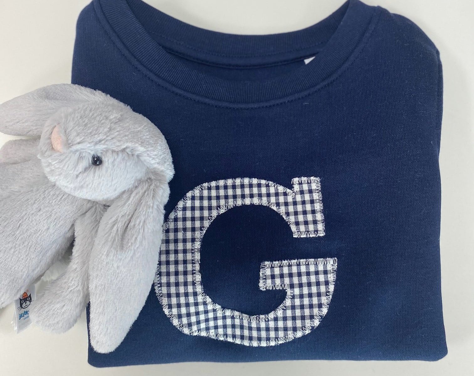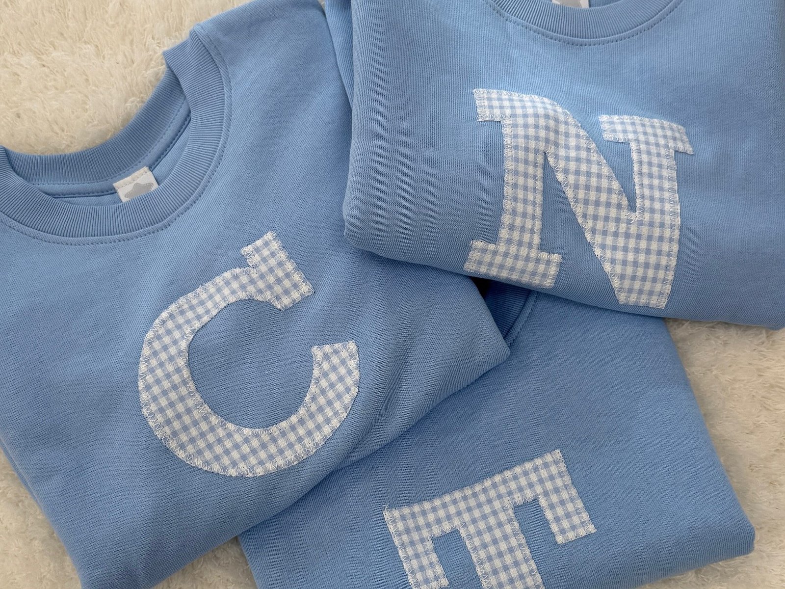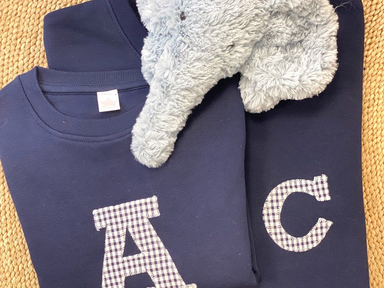 Tan sólo tienes que escoger el color de sudadera que más te guste y la tela que mejor te combine para la inicial. Indícanos la inicial a poner