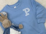 Sudadera niño con inicial en tela y base en diferentes colores, blanco, gris claro, marino, verde ..