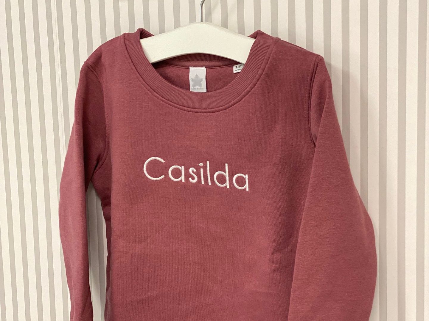 Tan sólo tienes que escoger el nombre que quieras y la bordamos en el color que nos digas.