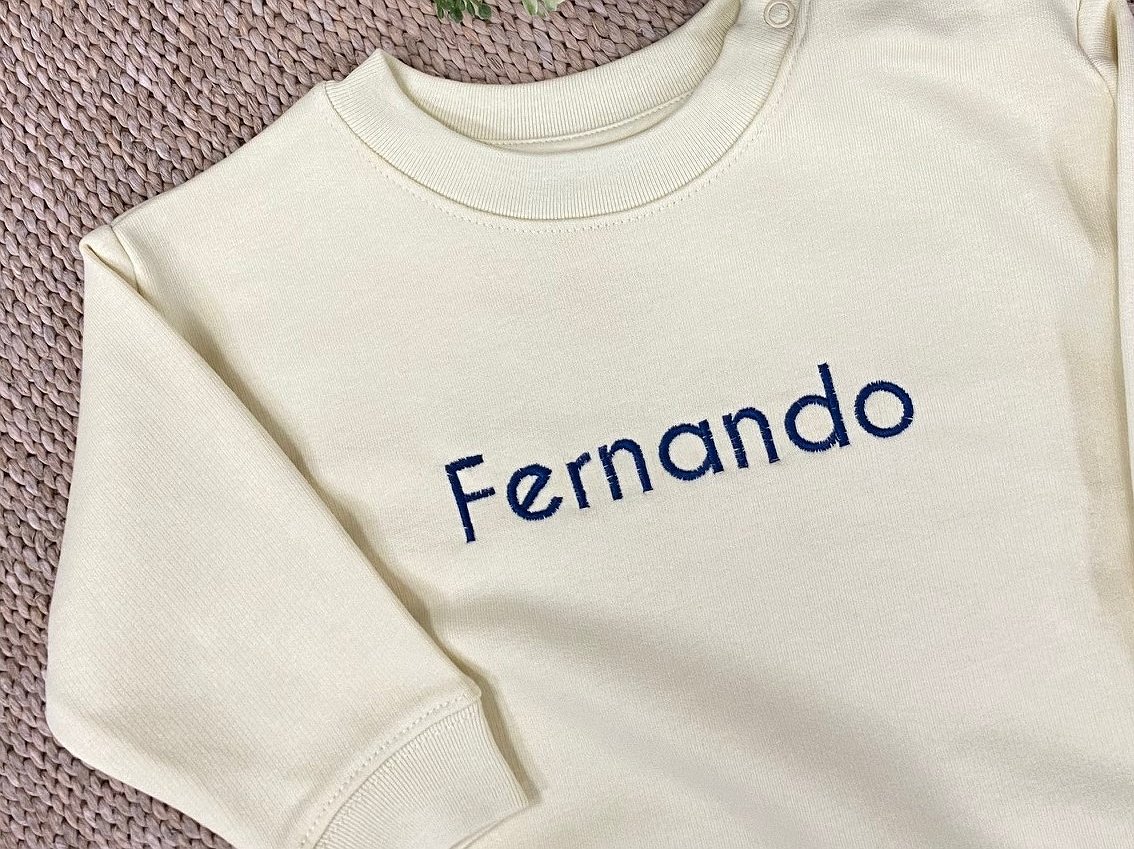 Sudadera niño con nombre bordado son de manga larga y cuello redondo, una prenda de gran calidad que puedes personalizar a tu gusto. \n \nEstá disponible en varias tallas y colores. Elige el tono que más te guste y el color del hilo a bordar.