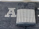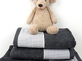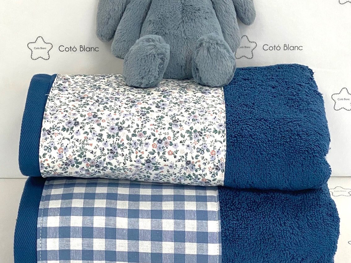 Toalla con cenefa. Nuestra toalla está elaborada por un tejido de rizo 100% algodón alta calidad, de gran absorción y suavidad. Puedes personalizarla con el nombre o las iniciales que prefieras entre una gran variedad de tejidos estampados. Haz de tu diseño sea original y único.