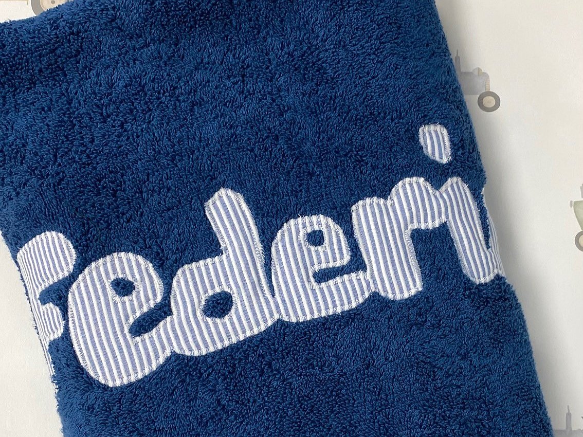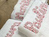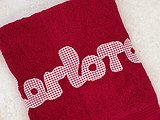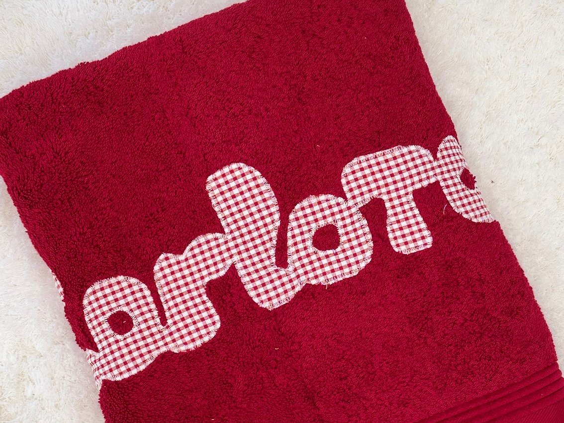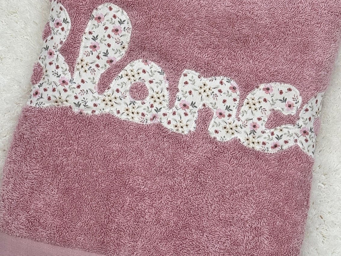 Toalla con nombre elaborada con un tejido de rizo 100% algodón alta calidad, de gran absorción y suavidad.